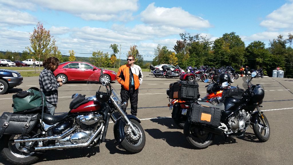We sat out at a picnic table in the sun to decide – now what?. I took the opportunity to have a fine cigar and people watch. We figured that, believe or not, we should start thinking about end of day. It was after 3 and no idea where should go and spend the night. I was in no hurry. It was a real nice cigar. Ok, we had a plan. Mansfield, PA. It was in bold type on the map. It would have hotels. It was two hours or so away. I forgot to mention, they had PA maps at the info center. We figured out the Walmart atlas is pretty useless.We saddled up and scooted. By that time it was 4. It became cloudy and the temps dropped. Wind picked up. We had to stop for fuel. We got to Mansfield around 630. We were very cold. I had my jacket zipped up to my chin, my lined gloves, one of those things you put on over your head and under your helmet. Still cold. Alex and Jon the same way.