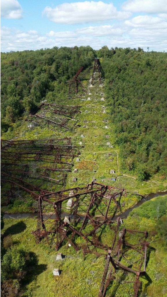 Got to the state park. Neat railroad trestle bridge. Built in 90 days in the 1880’s. Taller than the Statue of Liberty (that was in the information center). Destroyed by a tornado in 2004. Amazing. So an interesting side story here. There was a wedding party at the end of the part of the trestle still standing. They were waiting for the beautiful bride. During their downtime, we went and gawked, took pics etc. As we were walking back, the lady minister was also walking back. In conversation, I found out she (the minister) had been waiting for almost two hours for the bride to walk down the trestle. As we neared the information center the minister was telling the bride to get the show on the road. The bride provided some lame excuses. As the minister turned around and the bride provided a gesture. She will be somebody’s princess. After we went to the info center, walked around, used the restrooms etc., and came back out, they were still staging.