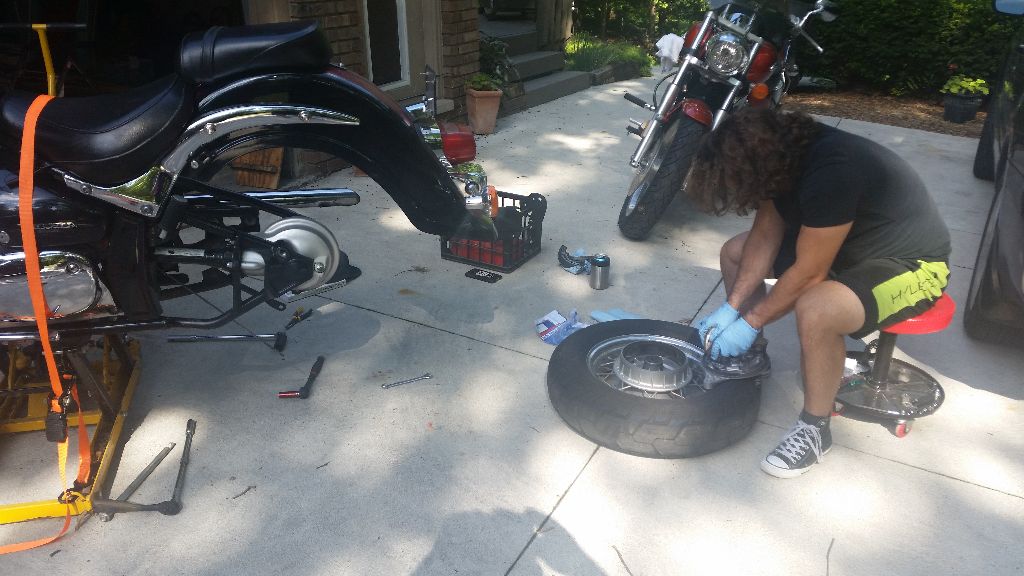 So this weekend we begin staging, prepping the bikes (Alex installing new rear brakes above) and aggressively getting ready to get ready. This will be an easy trip. My brother moved into a log house in the mountains of western North Carolina. We will be using his place as ‘base camp’, wandering out on day trips to TN, SC, GA and where ever else we decide. We are bringing no camping gear.