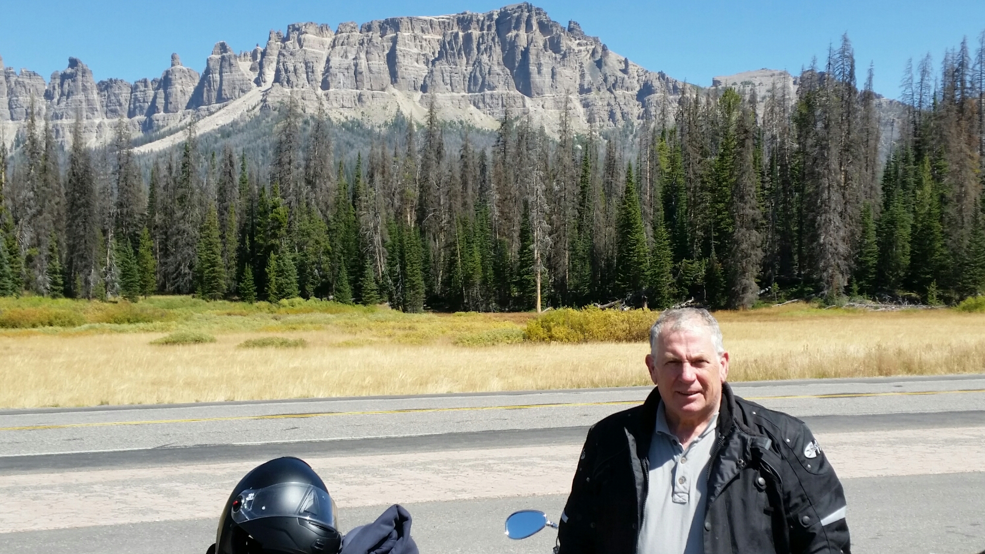 Again, scenery that just takes your breath away. Mile after mile. We again had the road to ourselves most of the day. Crossed the continental divide again a couple of times. Sometimes we forget the altitude we have been motoring the last week or so. Hit another pass for some mountain range I do not know. Summit was 9,700 feet or so. Mike and I stopped to take pics.