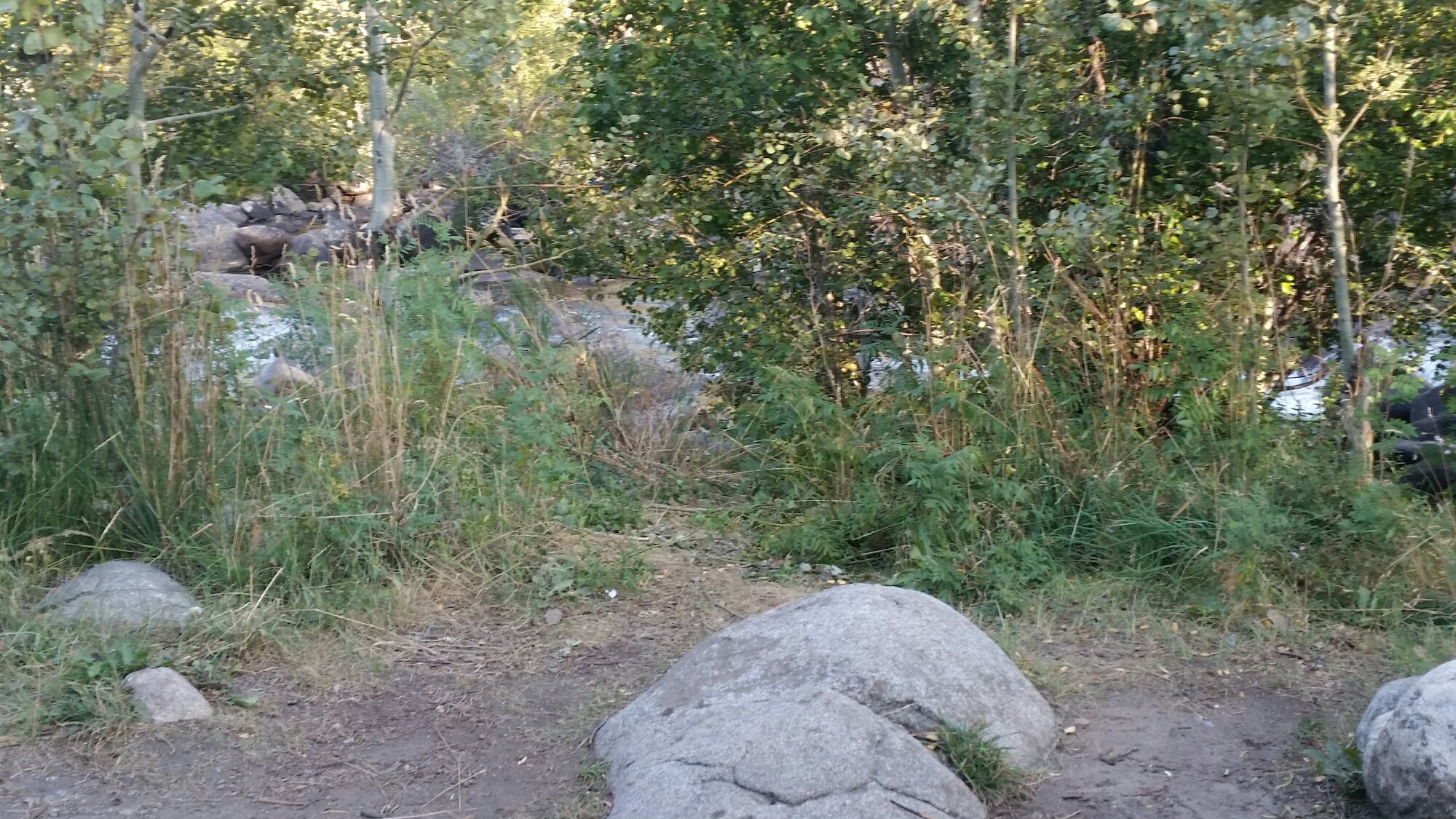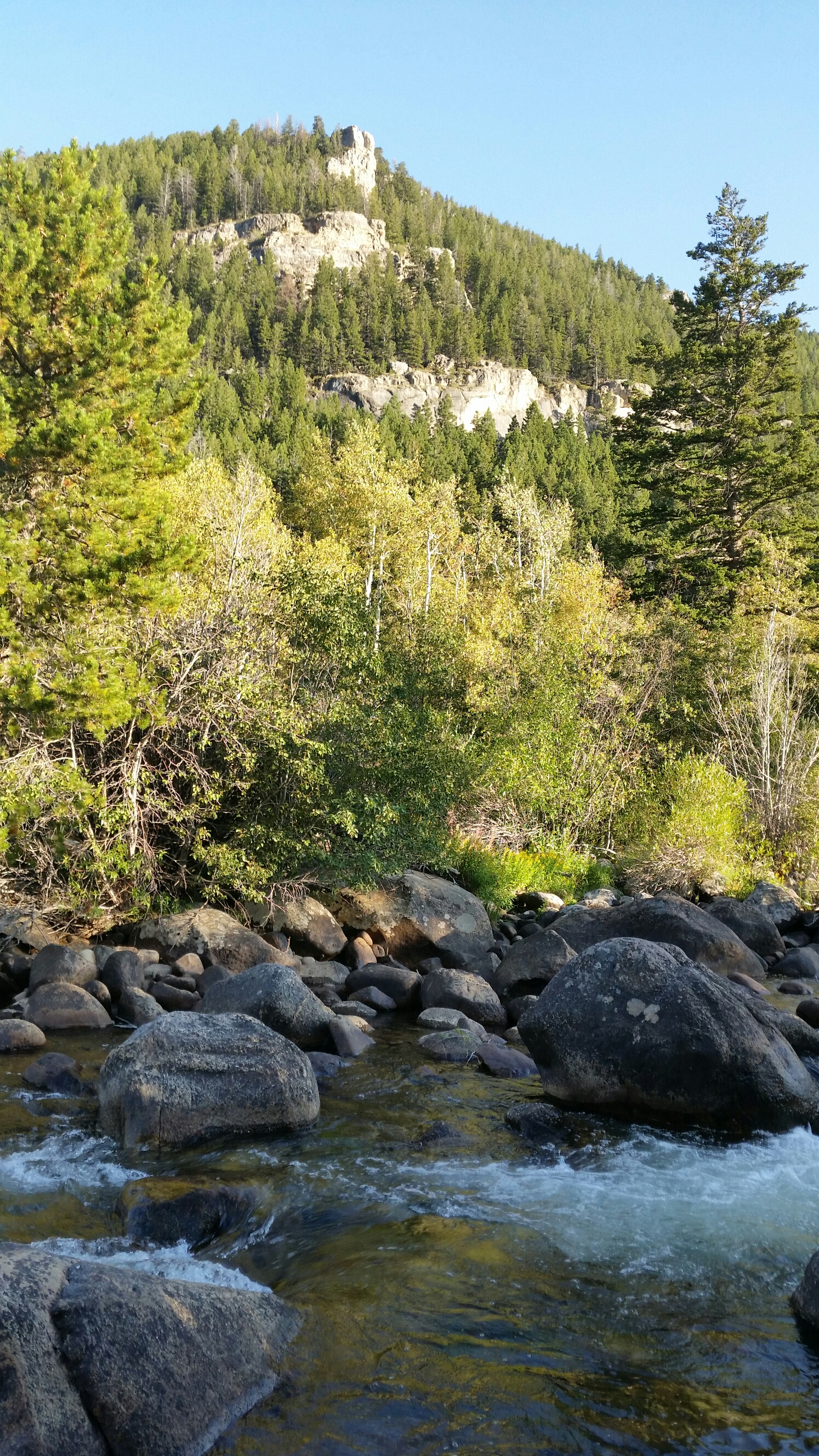 Got to Lander. Stopped at the Lander Bar. You guessed it. We had a couple of beers. Mike had a friend who met us there and we visited for a while. He gave us a great tip for a campsite in a canyon just out of town. This place is great. Best yet. A roaring mountain stream. We kept. Toilets (one of my must haves – even outhouses are OK). Firewood (we must have a big fire all night)
