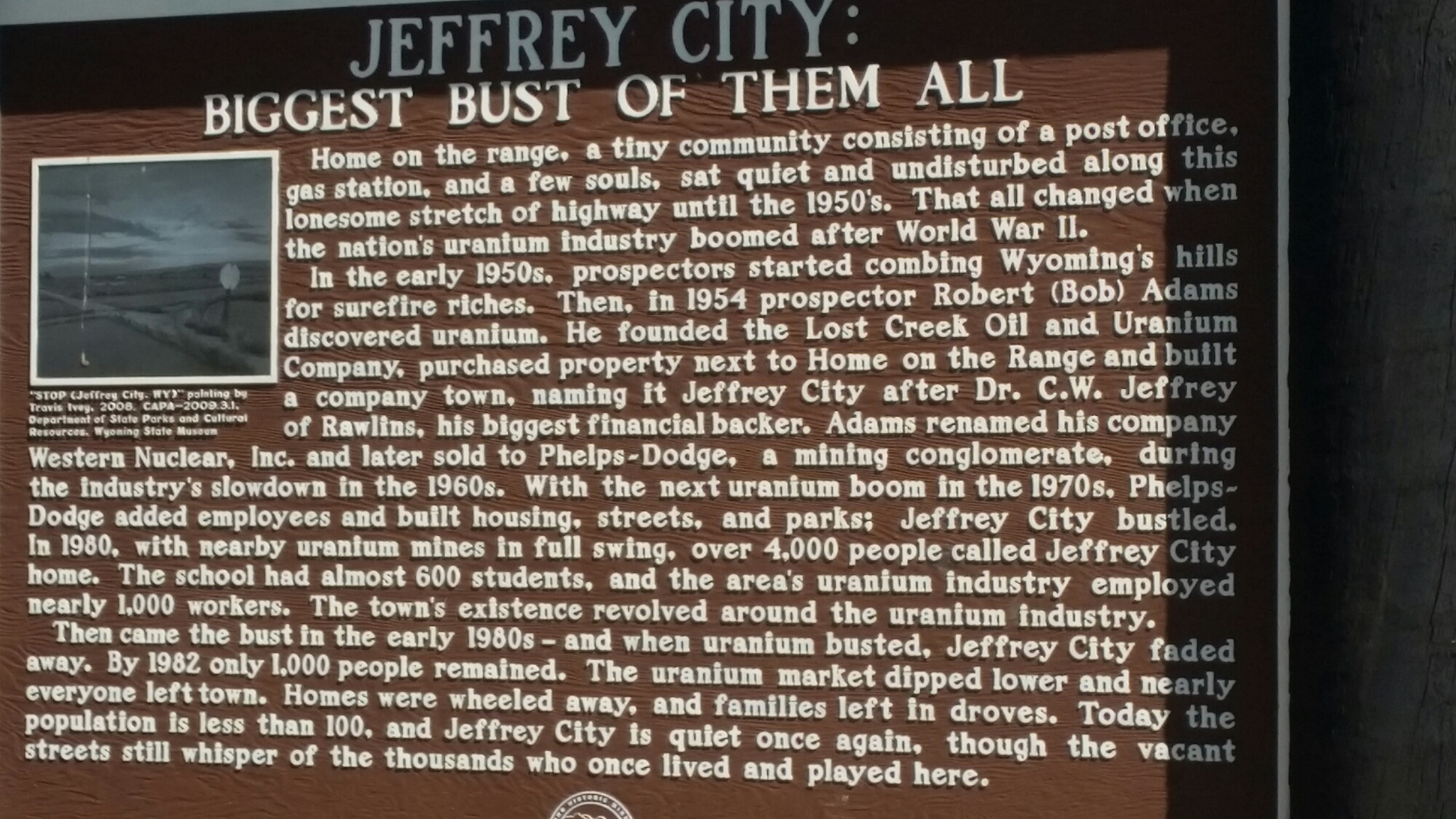 Stopped in Jeffries. A modern ghost town. Once was a booming uranium mine town. When nuclear reactors lost favor, the mine closed down. Everyone left. They had built a brand new school and never opened its doors. The streets are beginning to be taken over by weeds, disintegrating. Really surreal.