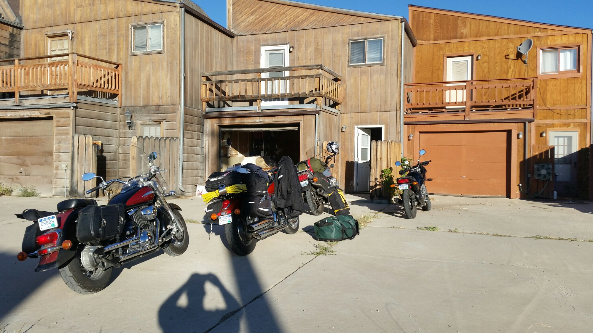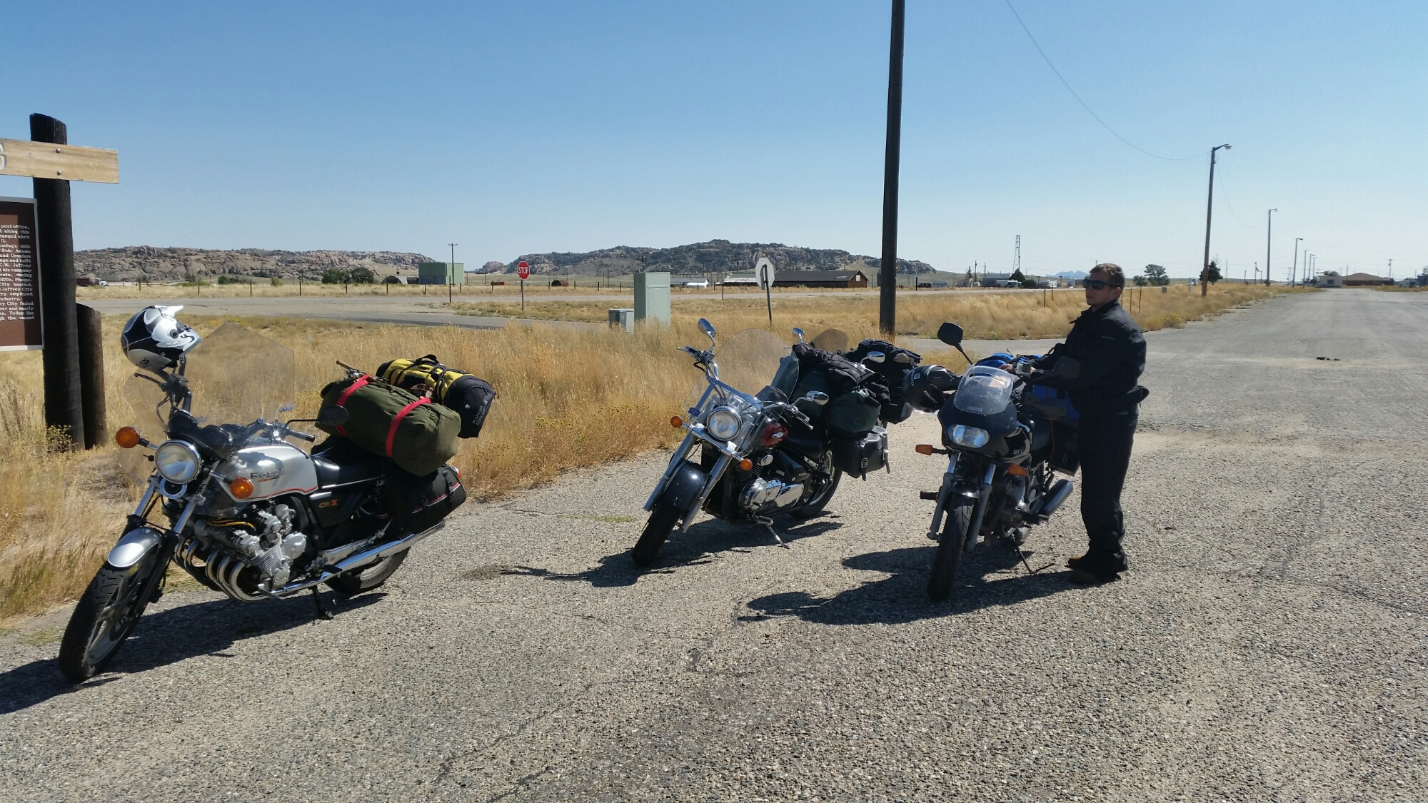 After well over a couple hundred miles or so, a few passes, continental divides etc. we pulled into Rawlings. Fueled up and lunch at Rosie’s. A tiny little Mexican restaurant. Again, muy good. Got on the interstate for twenty or thirty miles. Tight staggered formation. Got off and headed south for Encampment. Mike has a place up there. We are going to use that as our final stopping point in the west. Tomorrow we begin our eastern journey back to Michigan.