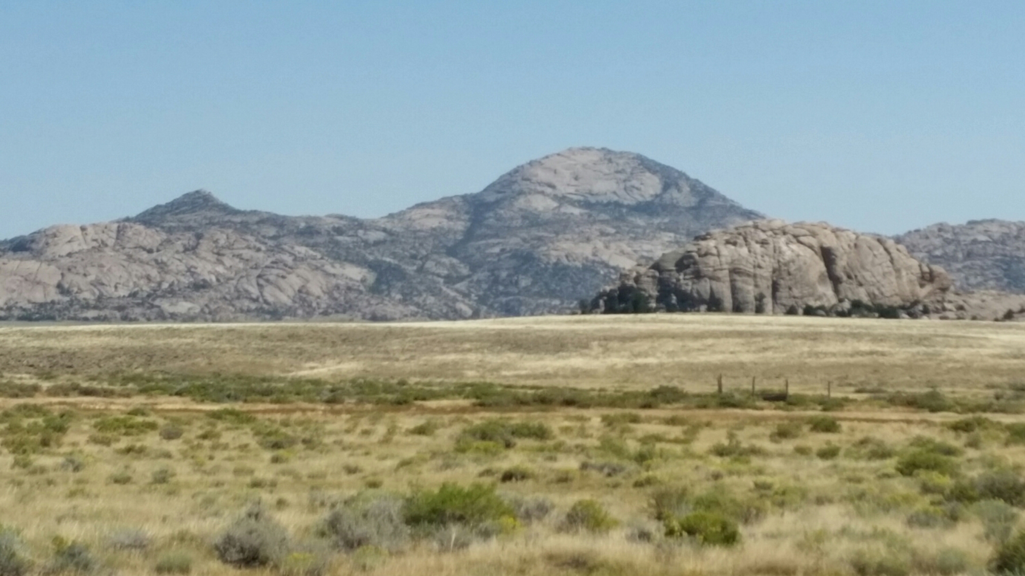 It was after 10 when we finally got loaded and headed out of the canyon and down into town. Fueled up and headed towards Rawlings, WY. Clear skies but very windy. Rode through some very bleak landscape. Devoid of trees. Lots of sage bushes. Tumbleweeds in the making. Sweeping vistas. As far as you can see, mountain ranges sweeping up from the desert. Nothing to break the view. No trees. No houses. No roads. Riding in areas such as this is not fun. The wind makes you work the bike, constantly making minor adjustments. Not hard. Just tiring. Two lane roads. Lots of truck traffic. And they like to go fast.