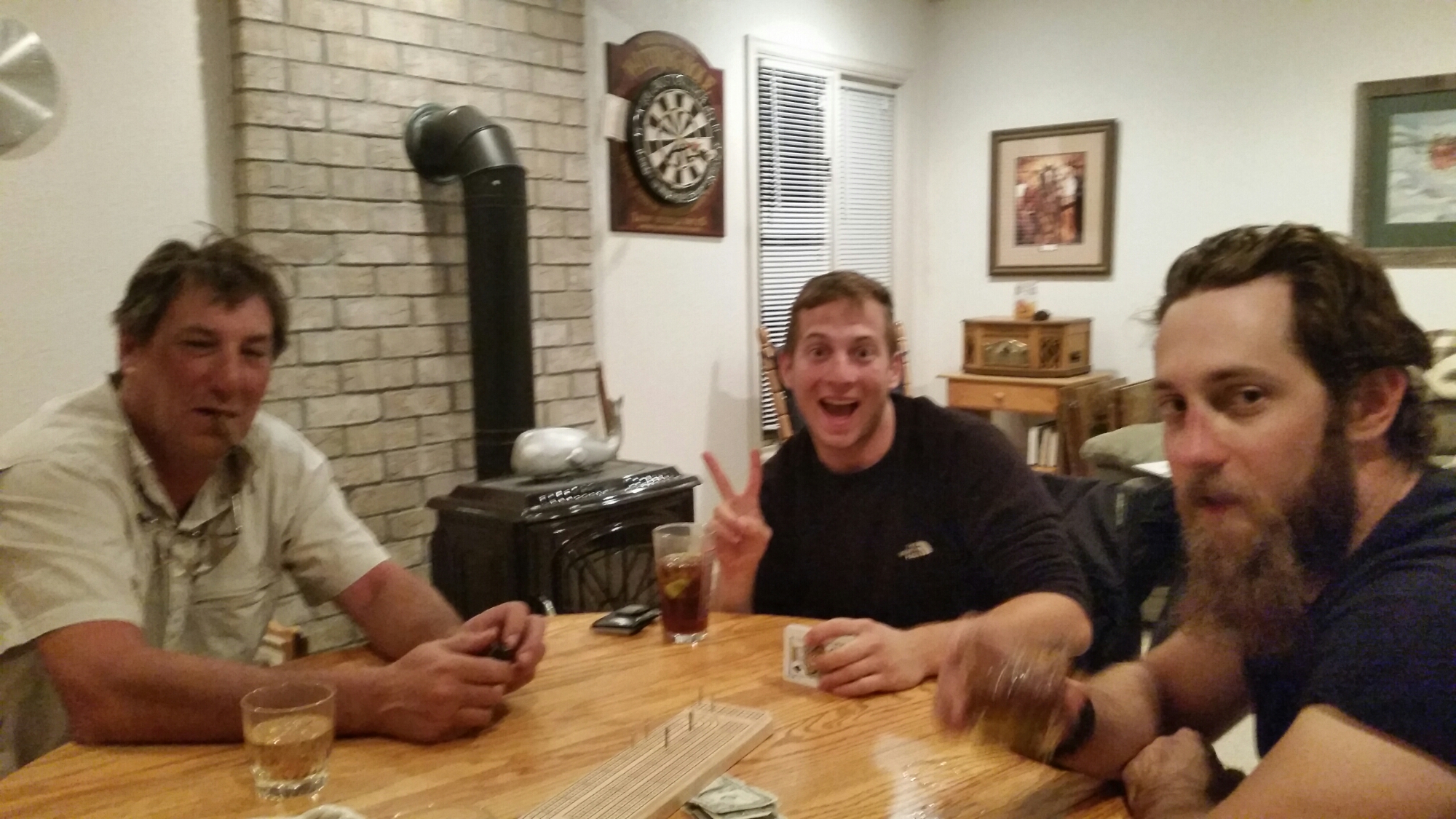 We played cribbage til late. Probably had a few too many after dinner drinks (or was it the before dinner drinks?). You can tell the level of bonding that occurs by the nature of the ribbing that goes on. It was going on between all.