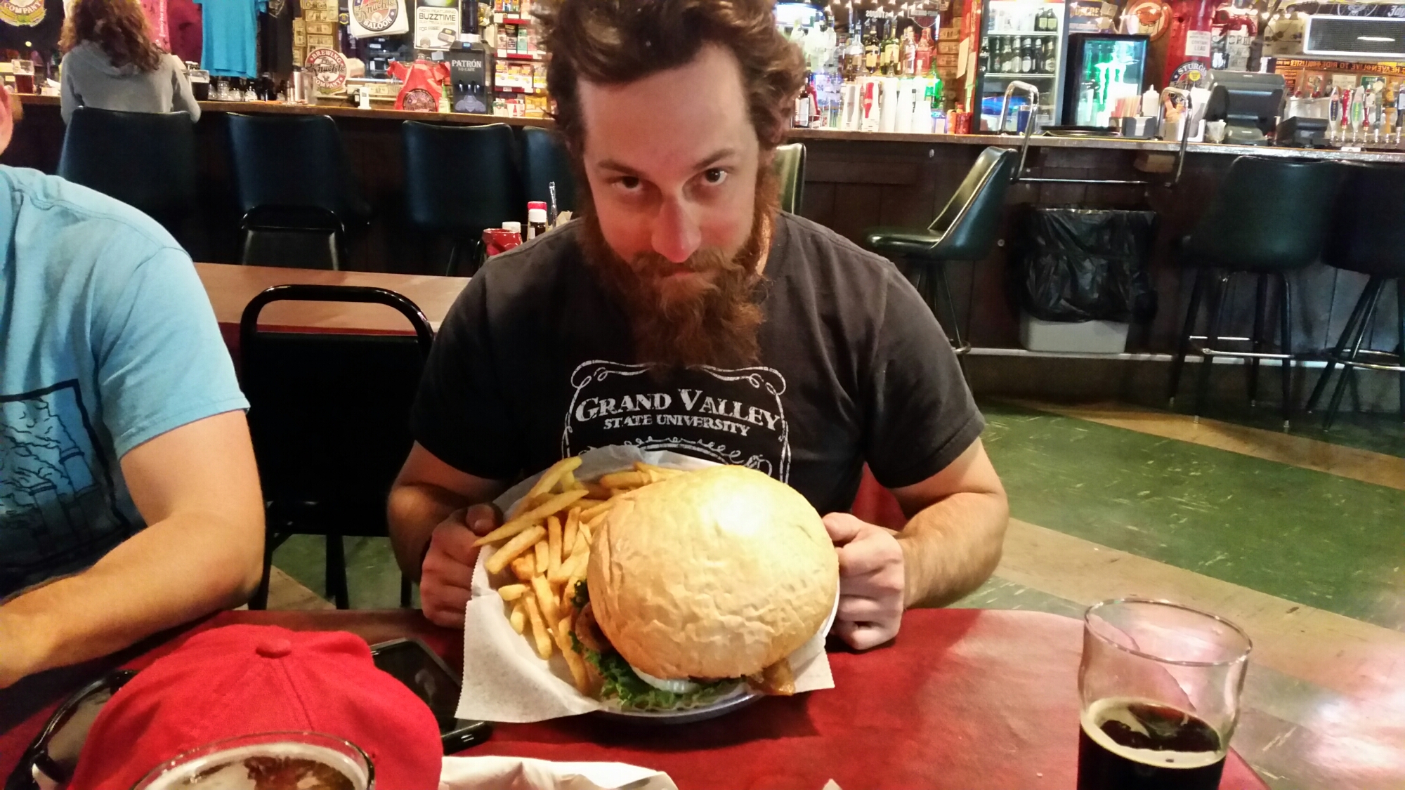 Sturgis, SD. Meh. I dont get it. I understand the event, over a million people this year etc. I also get we are there 2 weeks after. Just not impressed. Most of the stores and shops were closed and it seemed that they were dismantling the town now that the rally was over. We stopped for lunch at the Knuckle saloon which takes up a full block. Alex had to try the one pound burger, with bacon (which must of been a 1/2 pound of that). Almost finished it. Even with discarding most of the bun. Got some good local info on heading down to Mount Rushmore and camping.