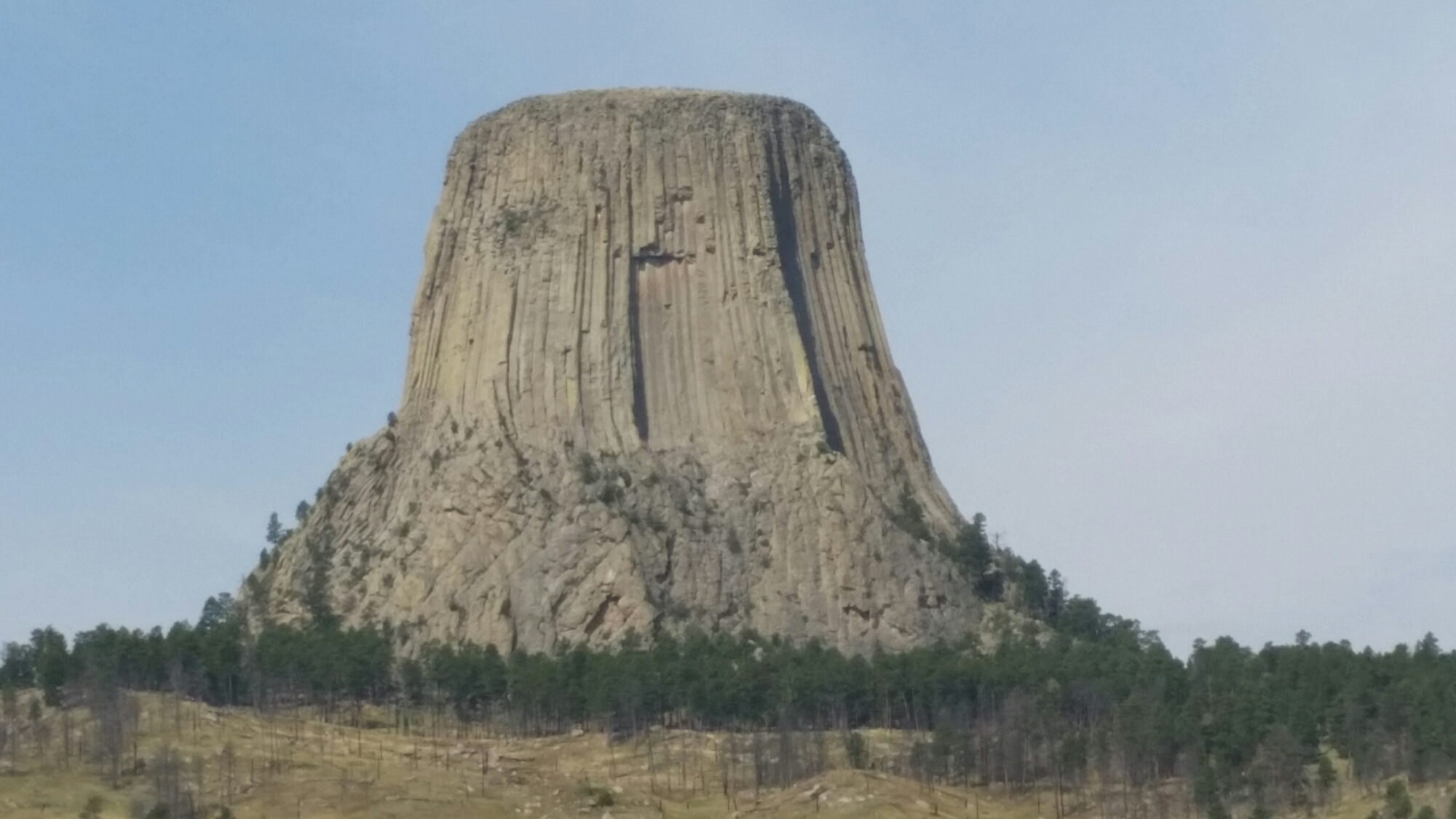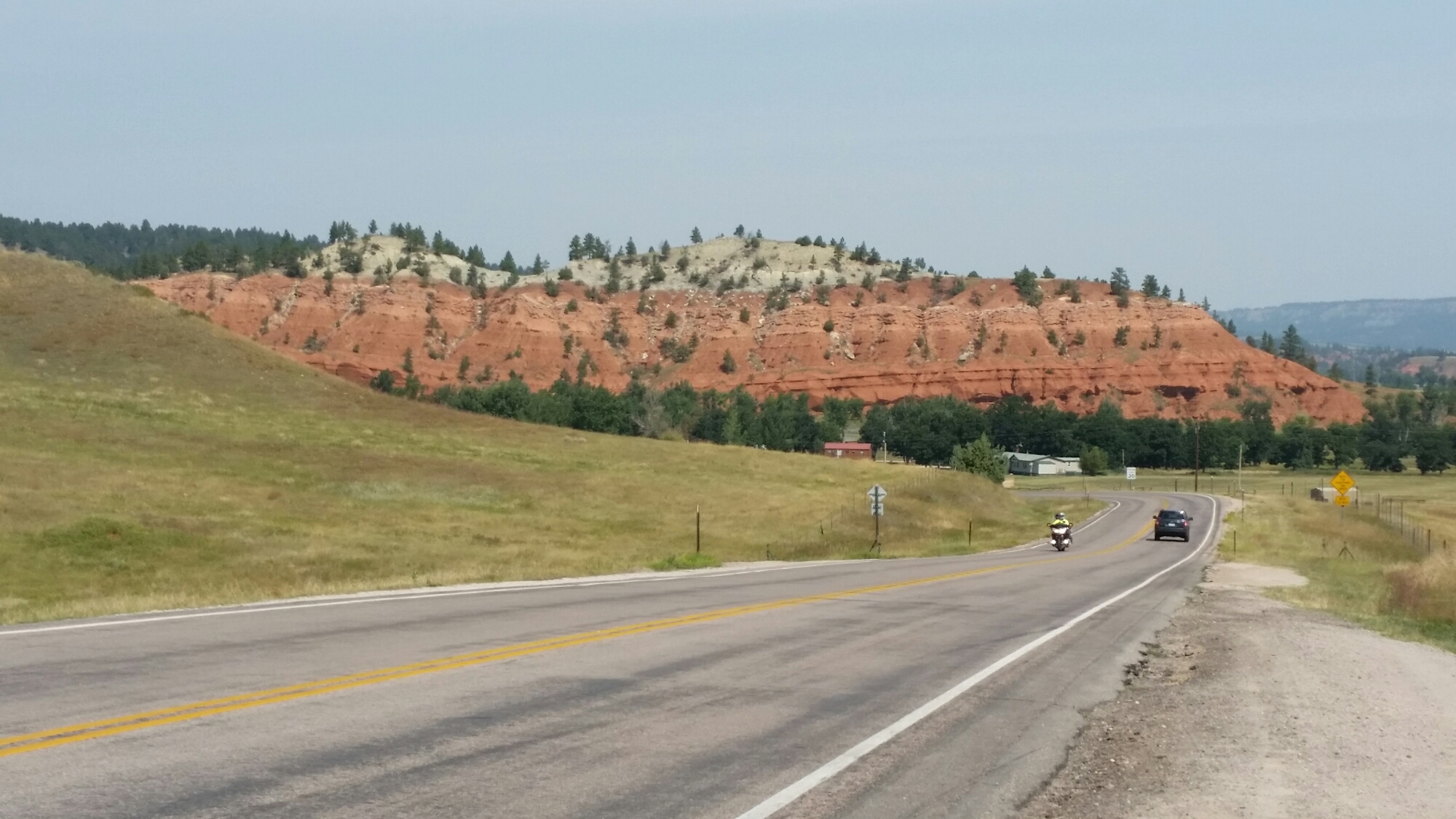 Wednesday. We packed up and rolled out of Rapid City right around nine-ish. With the sounds of the previous night’s karaoke in our heads we got onto the interstate and headed west. Sunny and supposed to be hot. Easy ride at speed. After about 40 miles we got off and on to a 2 laner to go see the place for close encounters, Devils Tower.
