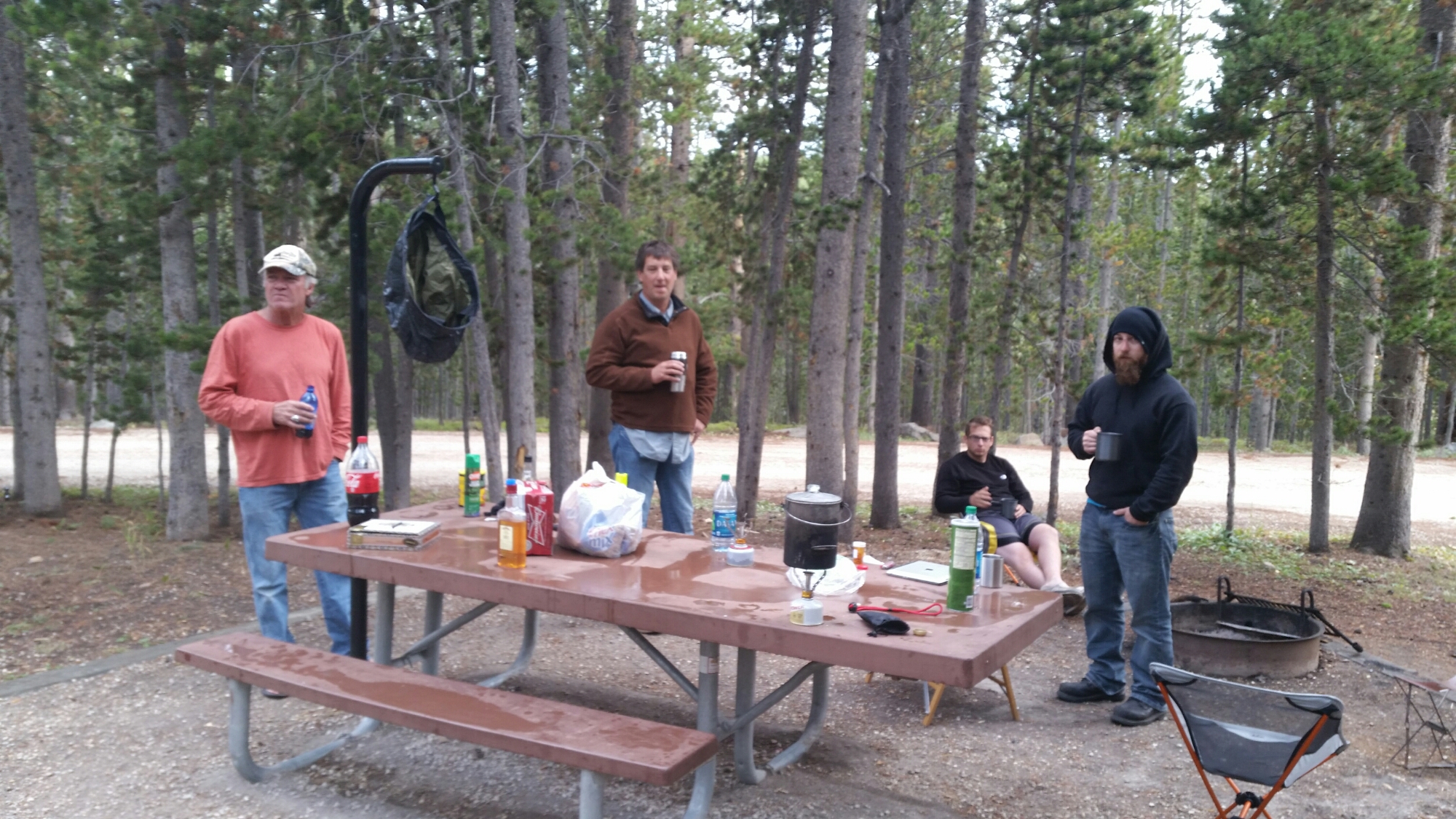 We headed up the mountain. Great drive. Steep. Hairpins. Beautiful scenery. We found a campsite. So here we are at 8,350 ft. Started to rain. Drizzle actually. Didn’t deter us. Campfire. Copious amounts of refreshments. Laughter. Stories. More refreshments. Wow. Called it a night around midnight. Rained all night. Stayed dry.