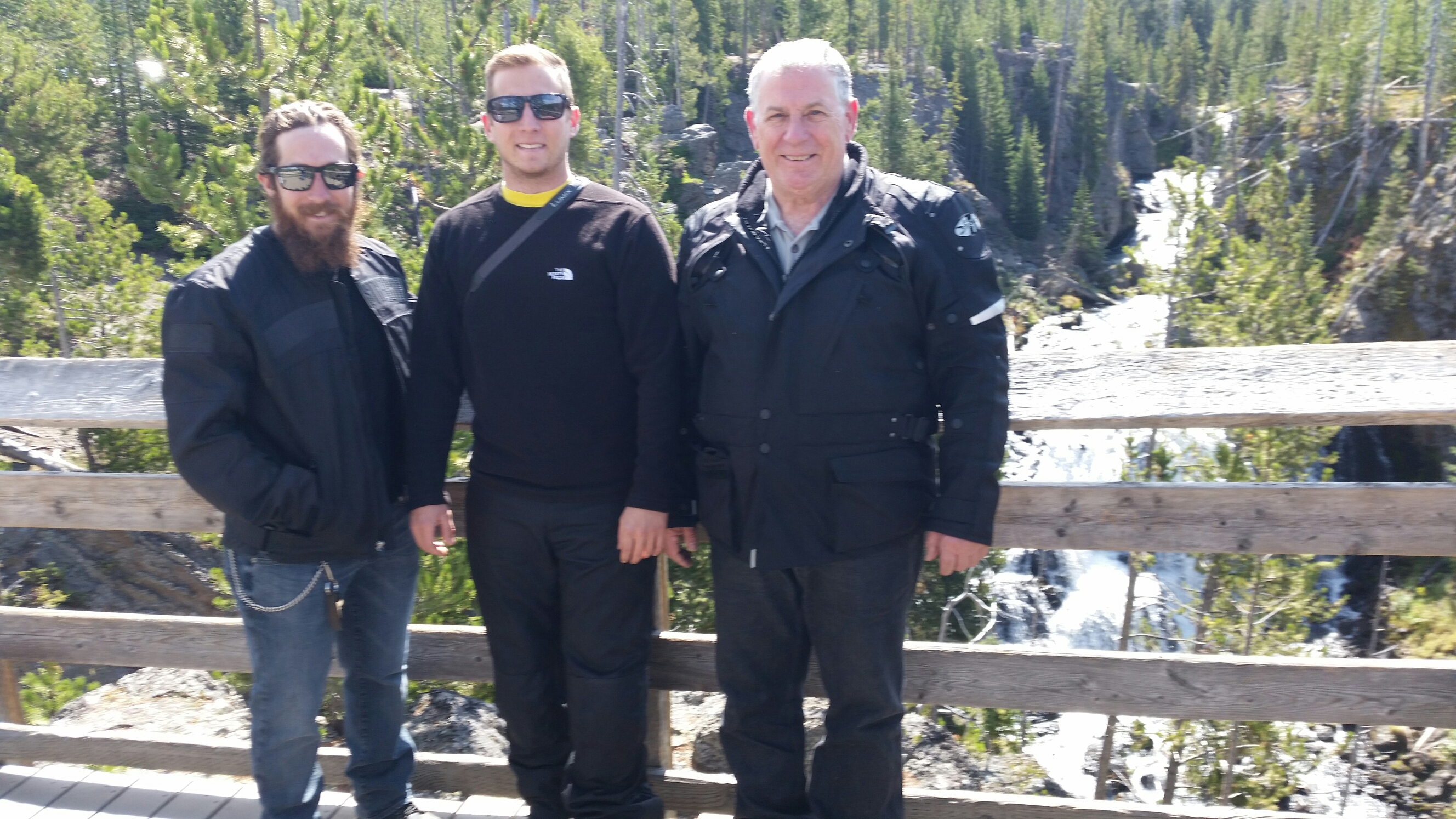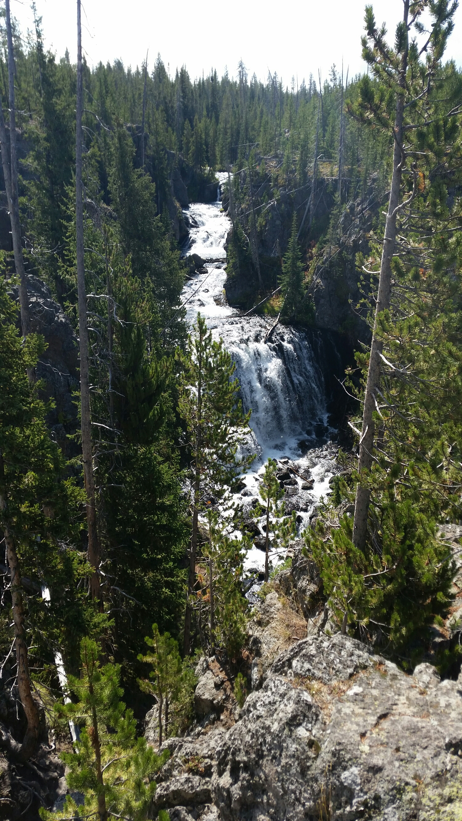 Saddled up and headed to Old Faithful, about 20 miles. Traffic got heavier. Stopped to look at some waterfalls.