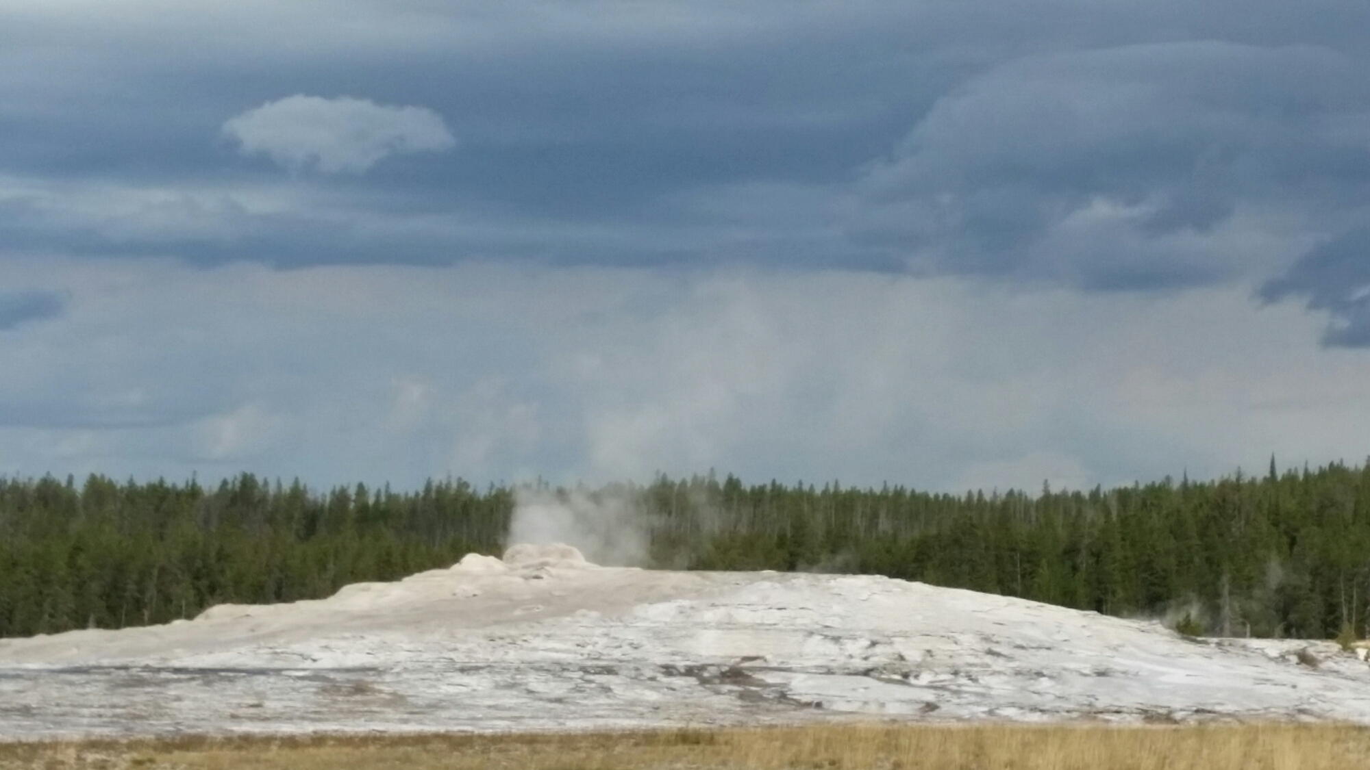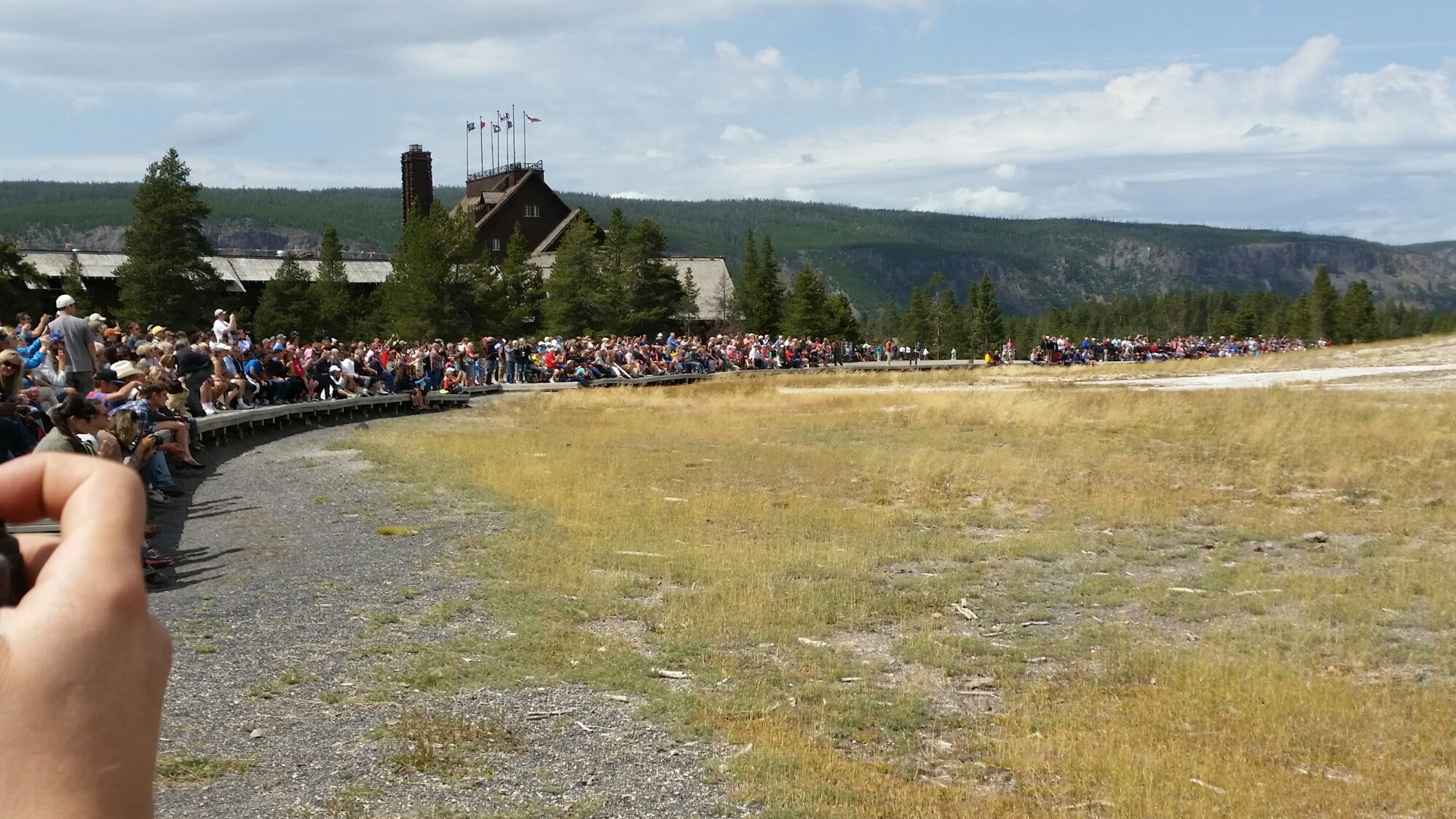 Beautiful area. Crossed the continental divide I believe 5 times. Got to the Lodge. Parked in a huge lot. Huge. And it was one of several. Just missed the geyser by about 10 minutes so the next was about an hour and 20 away. We claimed some primo benches and waited. It was very nice out. Sun. Beautiful vistas. Thousands of our closest friends. Geyser went off. Took a minute or two. We left. We came, we saw, we left. Didn’t even go in any of the numerous gift shops.