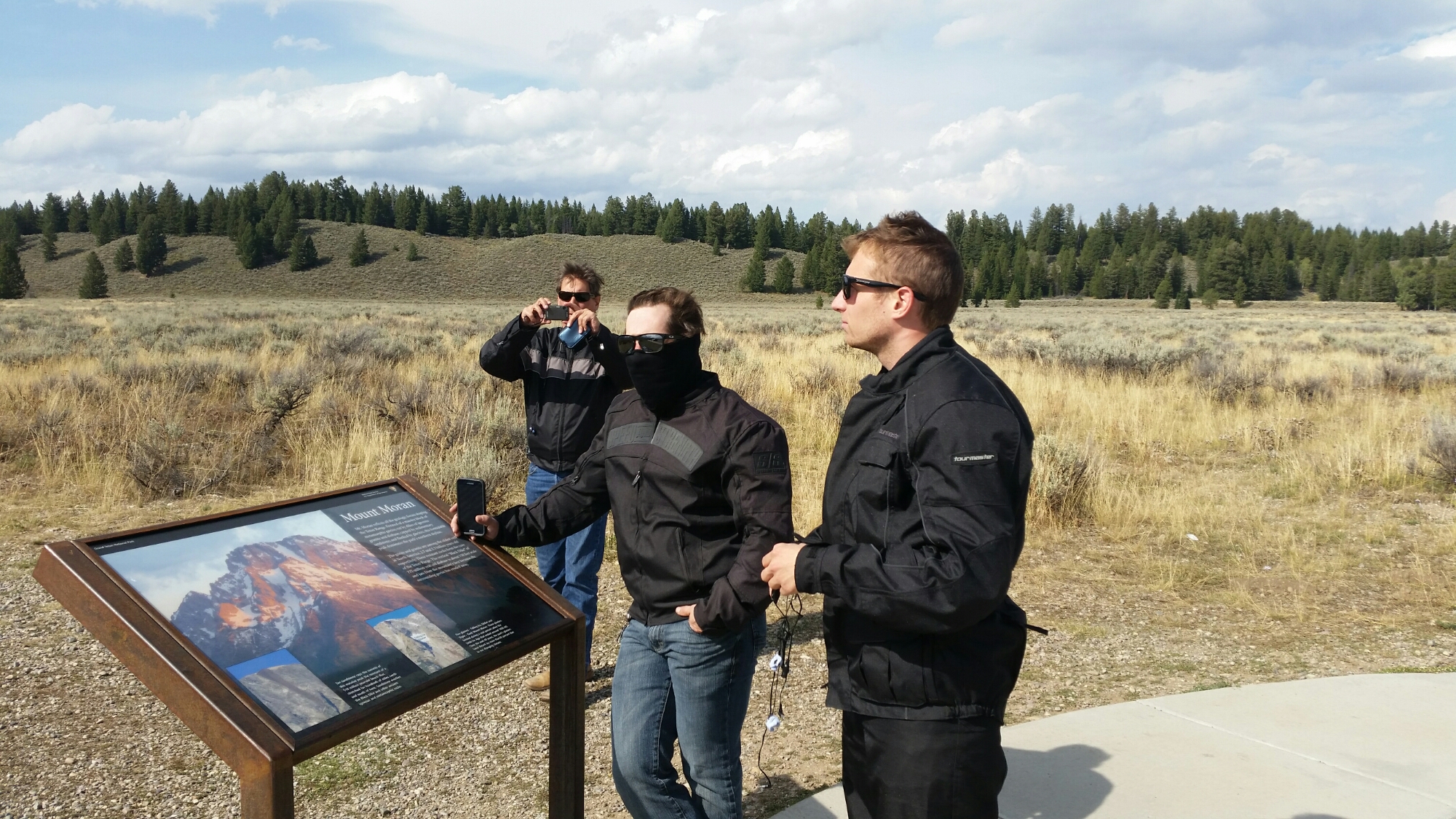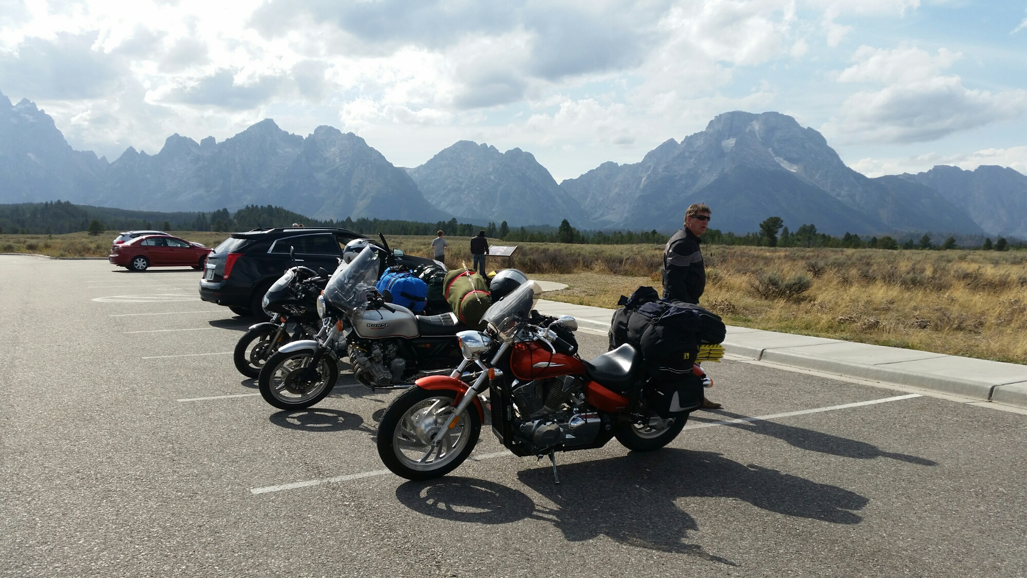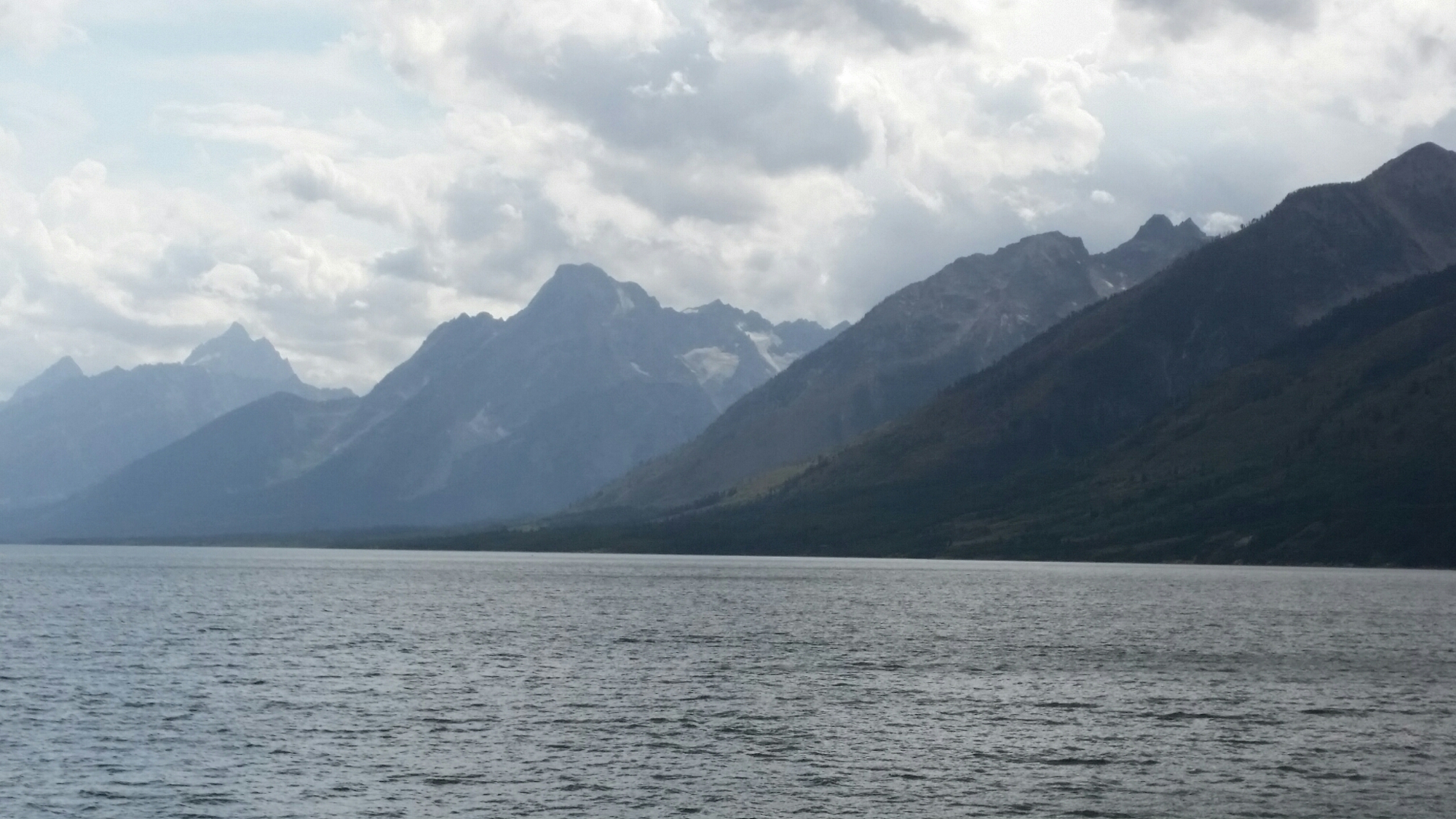 Left Yellowstone without fanfare. Stopped at a lodge for lunch and continued south. Into the Grand Teton park. Wow. Great road for a few hours winding along the base of mountains. Stopped a few times for pics.