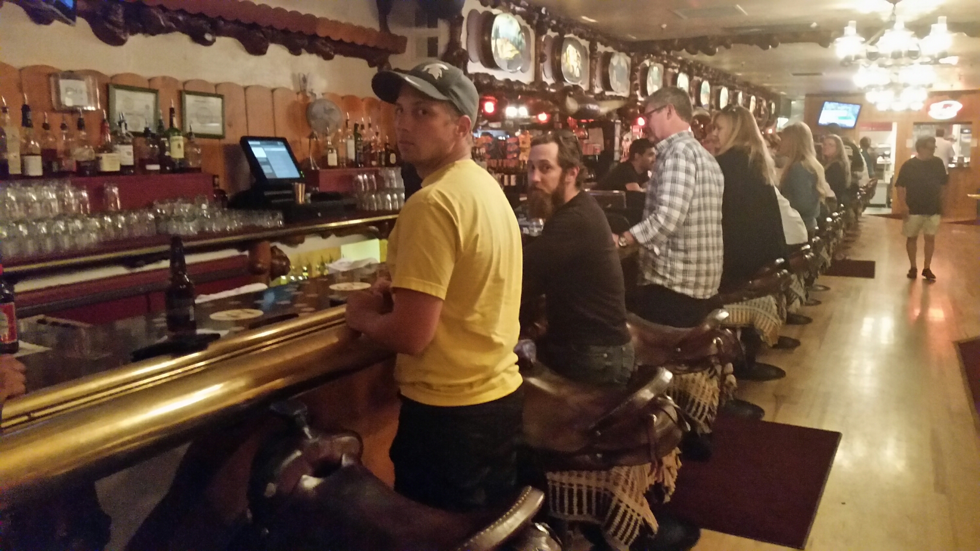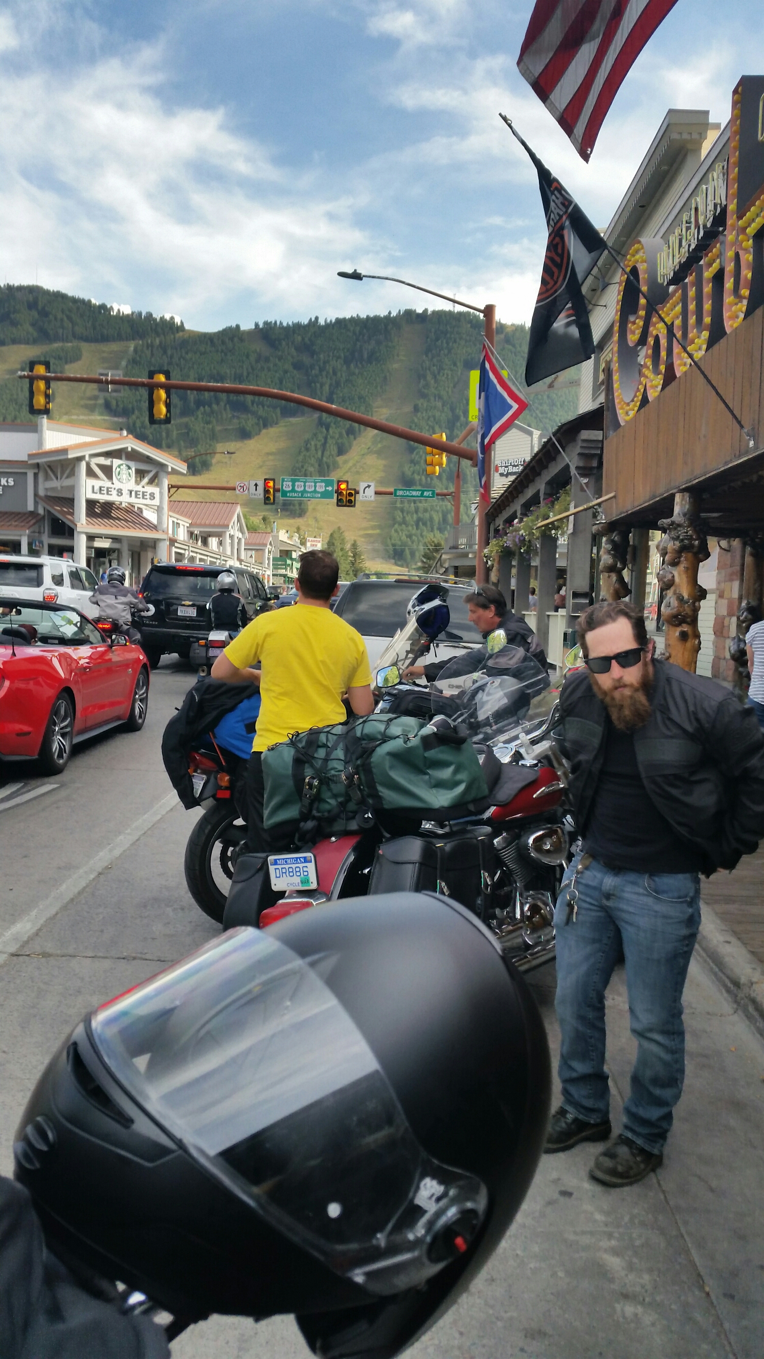 Motored into Jackson Hole. Neat town. Very upscale. Stopped at the Million Dollar Cowboy Bar on the town square. Saddles for stools. Had a beer and called around for motel rooms. Jackson, being what it is, most of the rooms were over $200. And this is their off season. Well with dickering, playing them off each other we finally snagged two rooms at the Virginian. $107. Most we have spent on this trip. Nice place. Restaurant. Liquor store. Drive up to your room. Laundry WiFi. Free coffee in the morning.