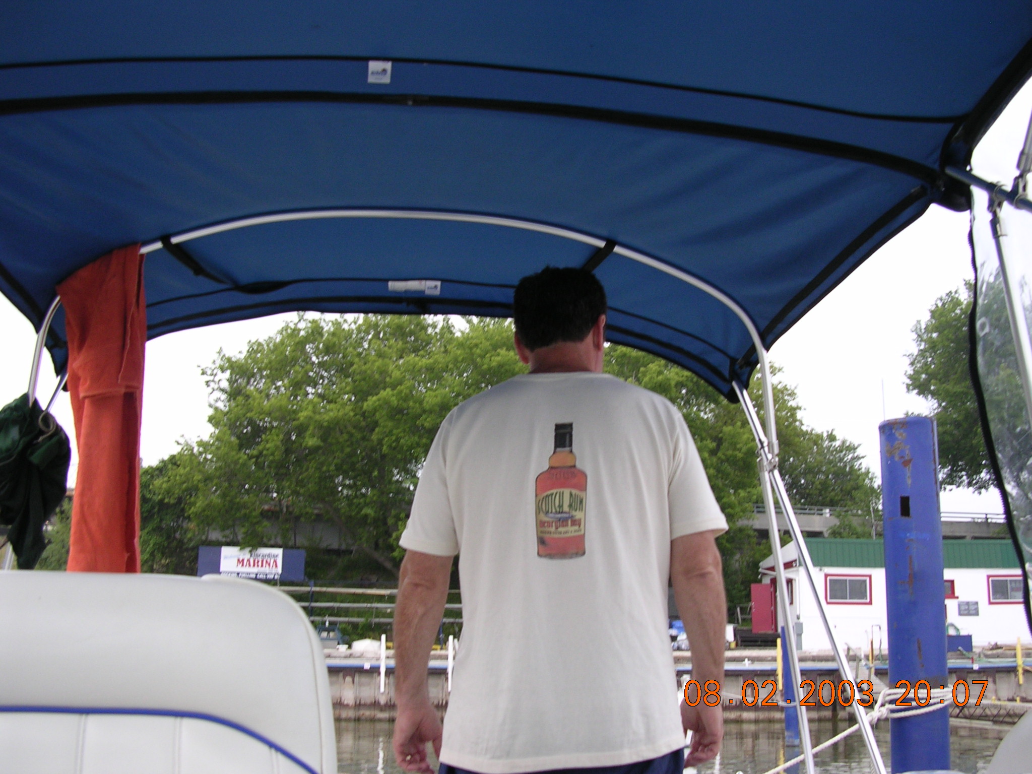 Laddie back behind the wheel. Beautiful day cruising. Approx. 3000 rpm – steady 20-23 mph. All of a sudden depth finder showed 6’ of water????? Figured too deep for readings.