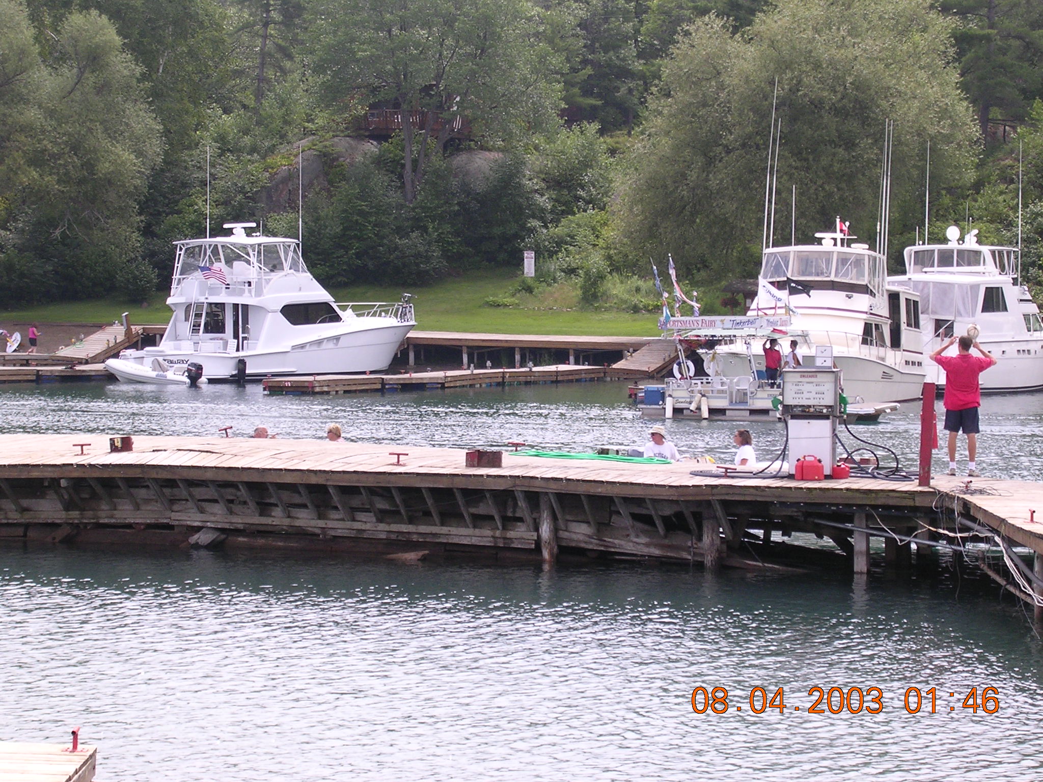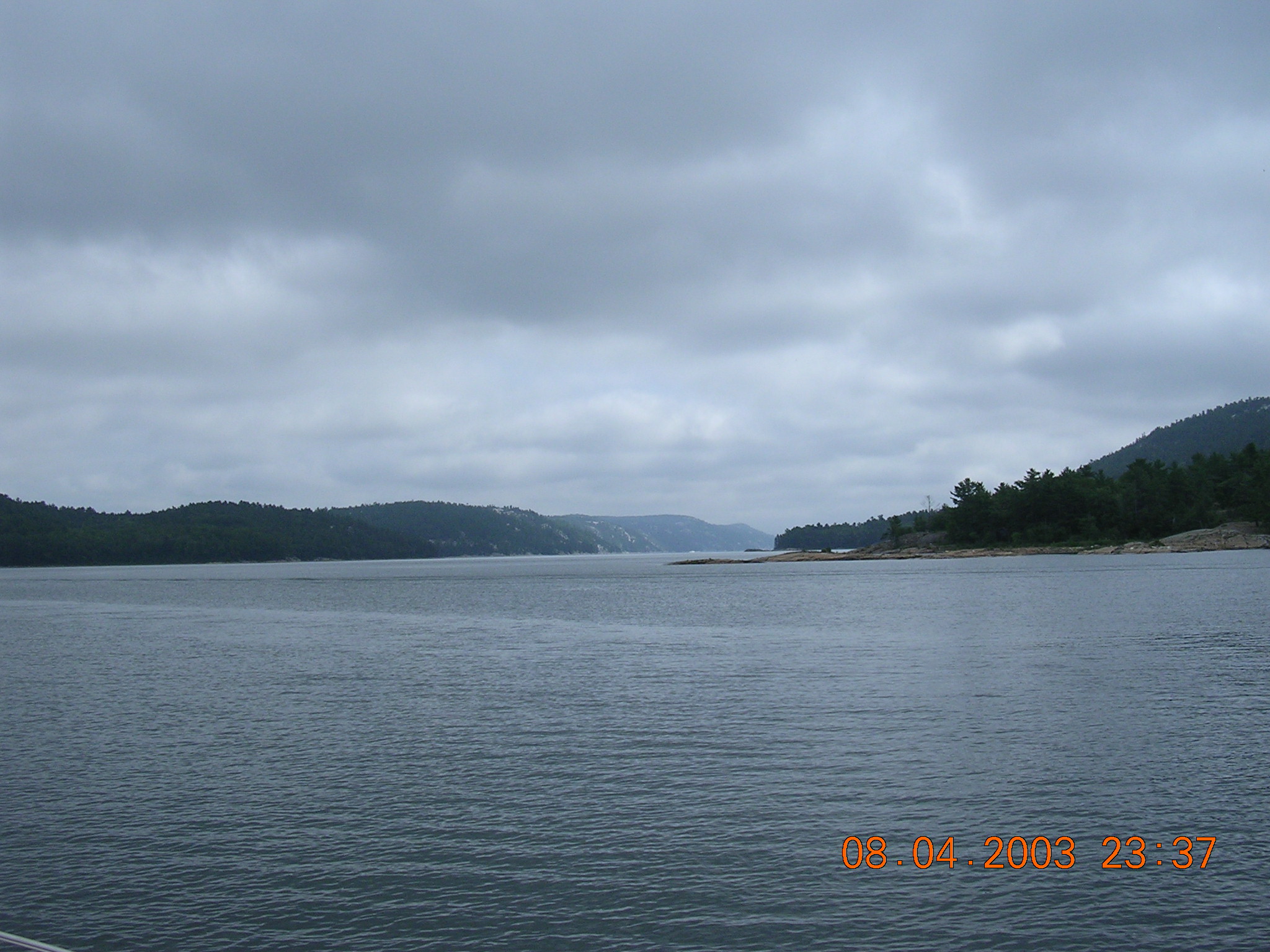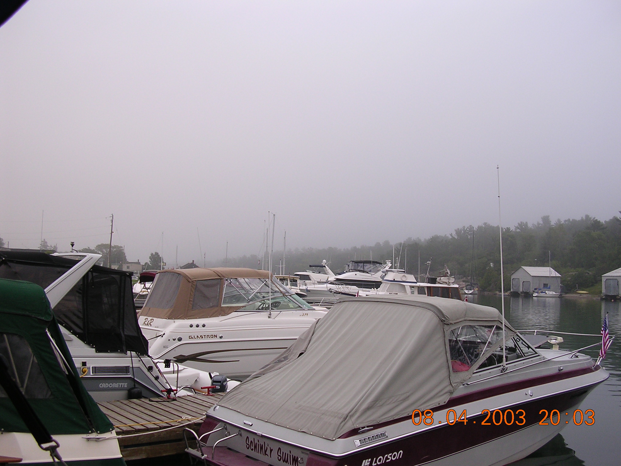 Tobermory, gassed up at Big Tub harbor. Laddie at the wheel all the way to Killarney. Fog and some rain enroute. Arrived at Killarney about 100p. Docked at Sportsman’s Inn, a very crowed marina.