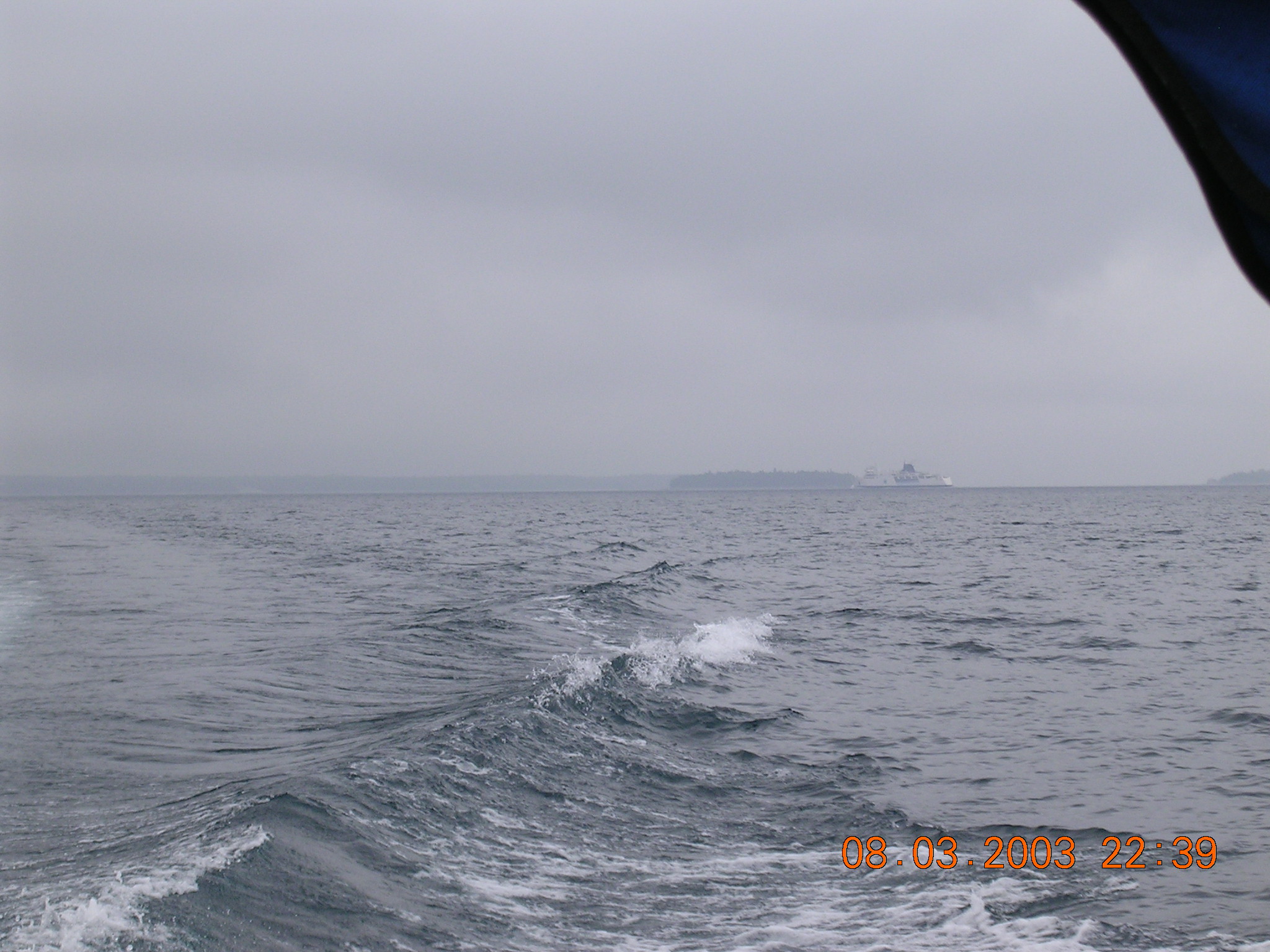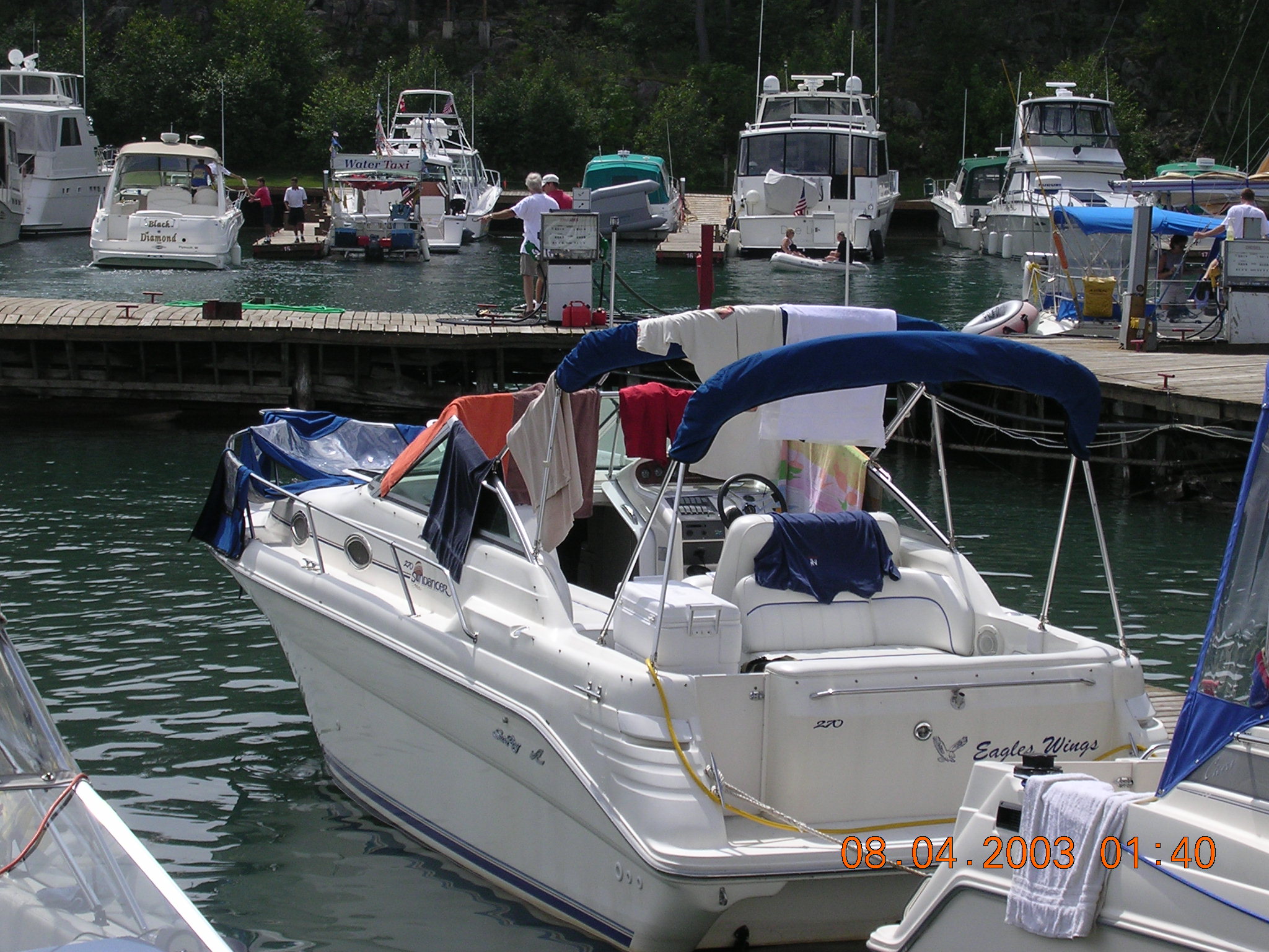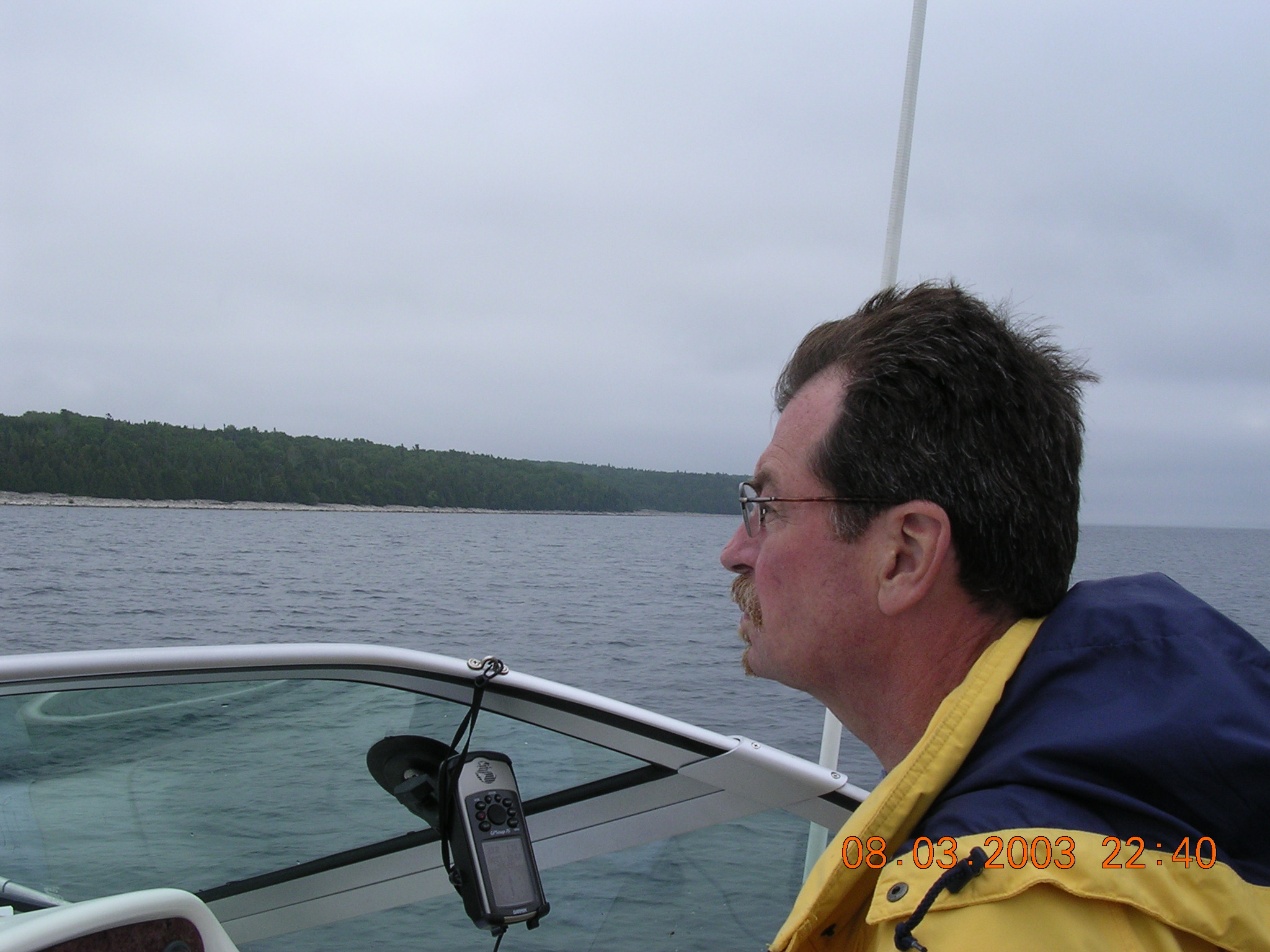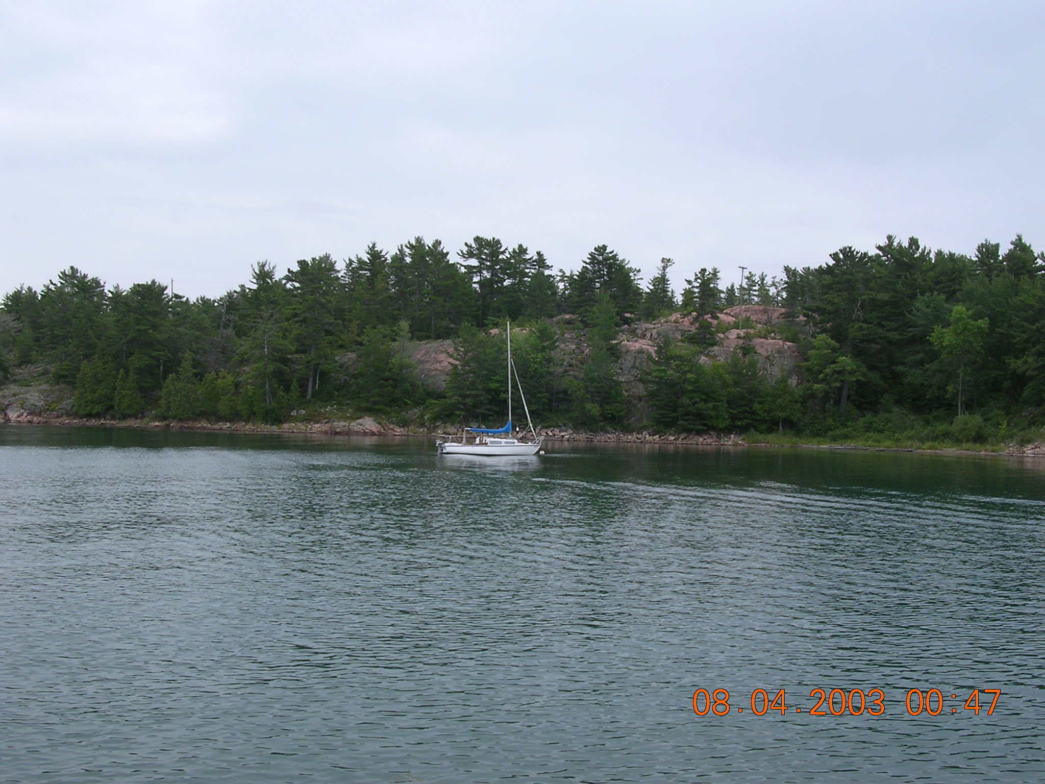 Tobermory, gassed up at Big Tub harbor. Laddie at the wheel all the way to Killarney. Fog and some rain enroute. Arrived at Killarney about 100p. Docked at Sportsman’s Inn, a very crowed marina.