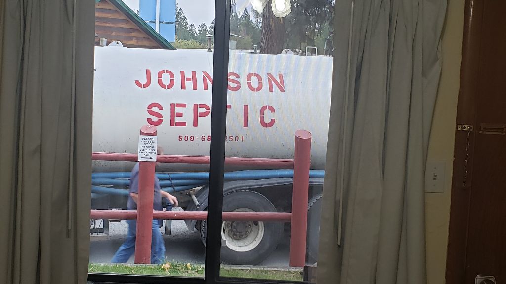 Decided to head up the road about 100 miles and look for a room for the night.  That will put us about 150 miles out of the Seattle metro area and be able to roll in when Jon gets off work..  Headed to Mazama.  Found a nice property.  No one in the office.  Sign says if not check the corral or call.  No one in the corral.  Called.  Look for Sonny.  She should be stacking wood by the barn. MIA.  We did that game for a little bit and decided to dial for motels.  Found one in Twisp.  We passed through Twisp about a half an hour ago.