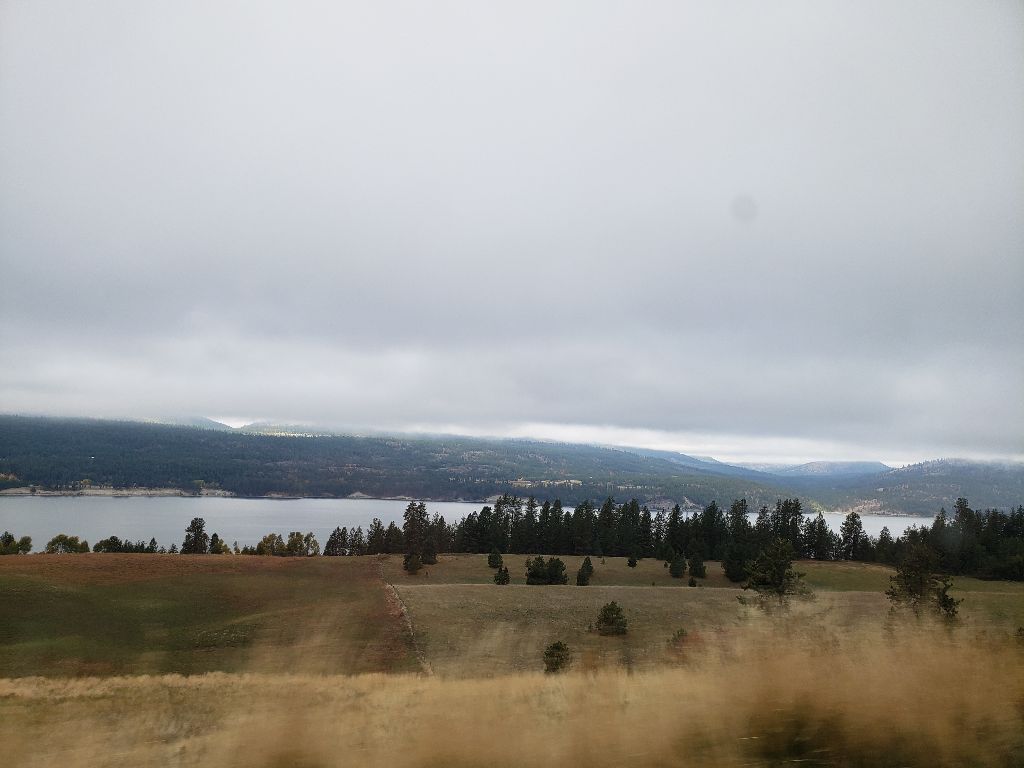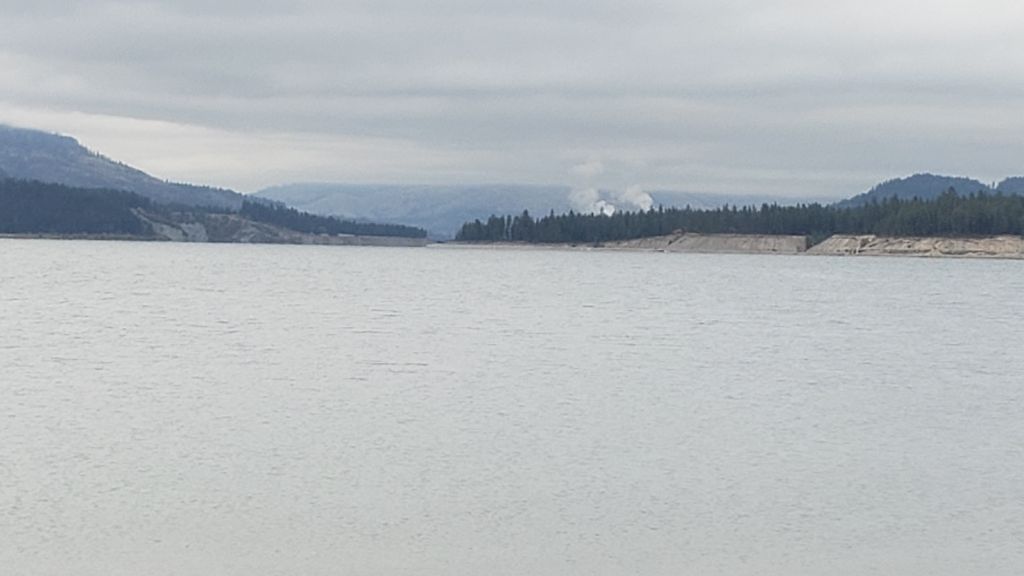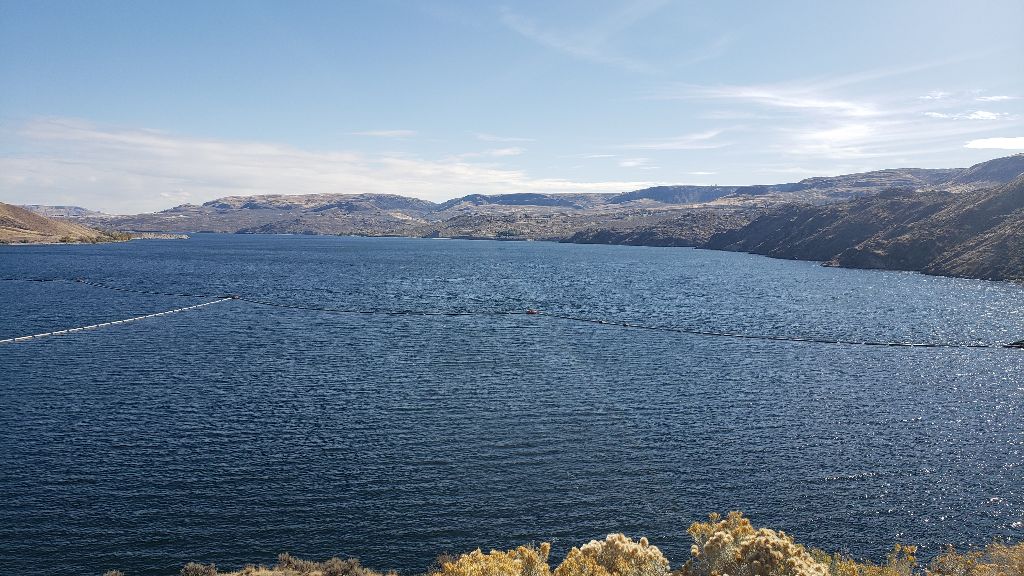 Going sightseeing. Headed out a little after 9a. Found the road that parallels the east side of the Columbia River / Roosevelt Lake. Headed south. The lake is created by the Grand Coulee Dam which is over 150 miles long. We drove south about an hour. Again fantastic scenery. Albeit still low clouds. We have the road to ourselves and almost all boat ramps, campgrounds etc. Empty
