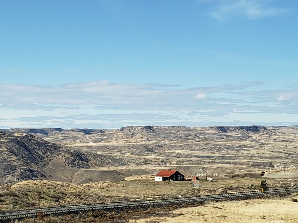 Again, smooth driving. On the 12 federated tribes reservation almost the whole way. Sun still out. Nice.  Passing through apple country. Stopped now and then to stretch our legs.