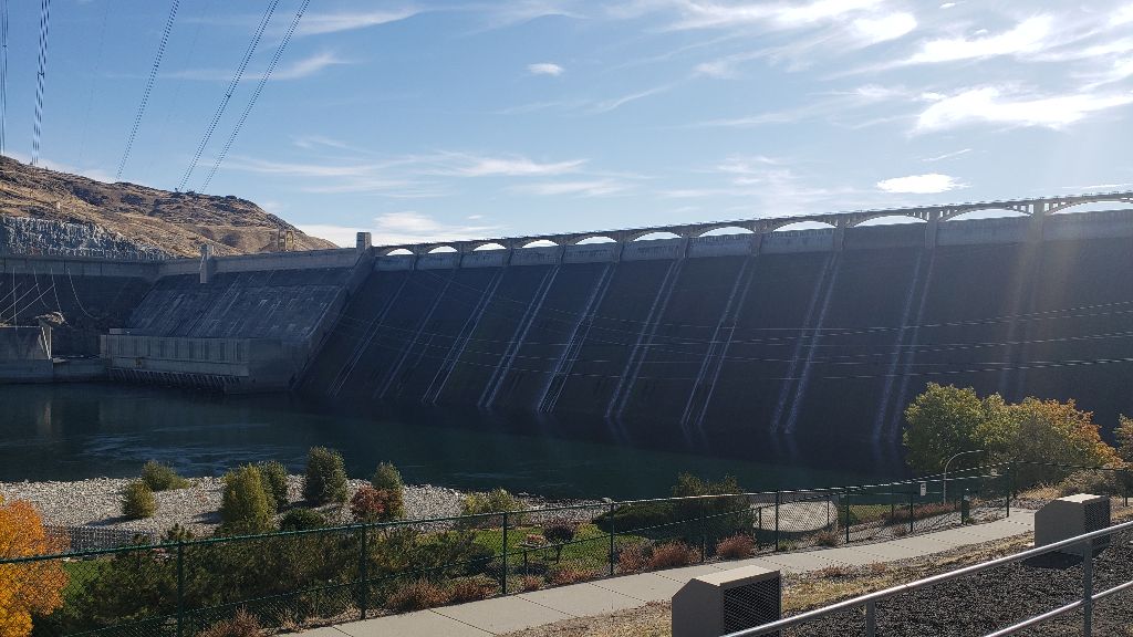 Visitor center. Pictures. Enough dams on this trip. Did I mention how big it was. Only one bigger I guess is that one in China. Another useless factoid. Tried to find a place for lunch. Many closed. One was full of charter bus types. We decided to head north to Washington Route 20. About and hour to an hour and a half north. That will take us west to the Seattle metro area. Still a few hundred miles away but we would like to pull in there tomorrow.
