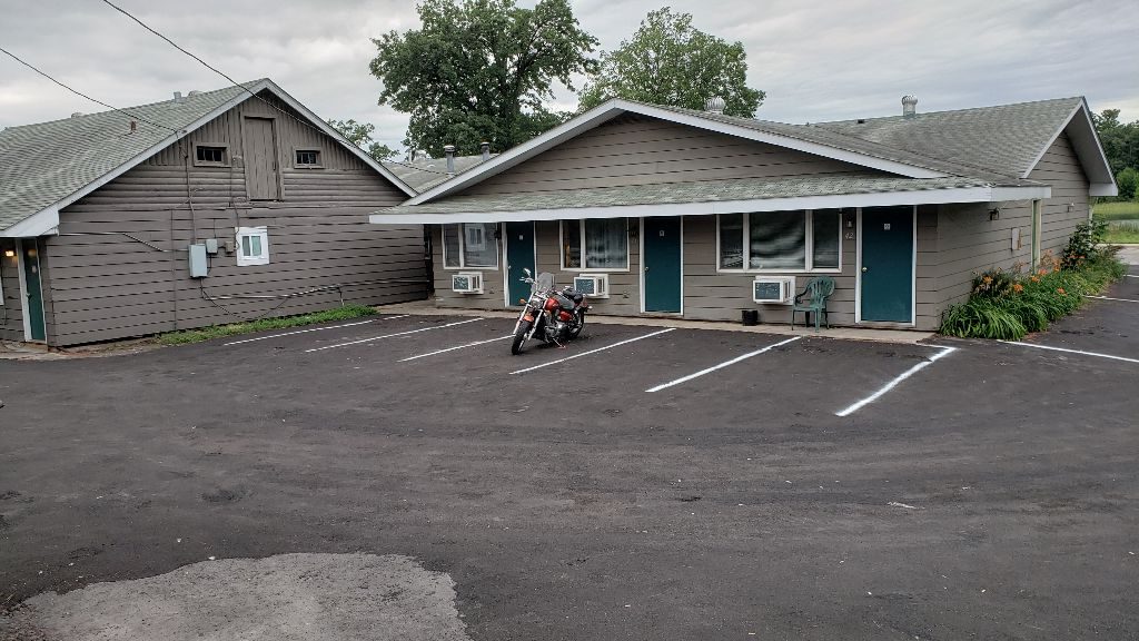 I parked my bike. After unloading I noticed that the kickstand had sunk into the asphalt a good 2 inches. I pulled the bike forward a couple of inches and put a kickstand plate out I carry with just for this. Only reason I mention is that this section of the motel seems newly repaved. It also seems that it was done by Daryl, his brother Daryl, and his other brother Daryl. It seems the kickstand plate is sinking as well. I already moved it again once. Once more before I go to sleep.