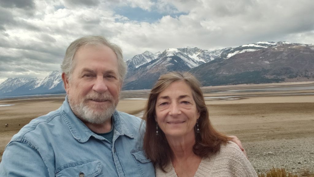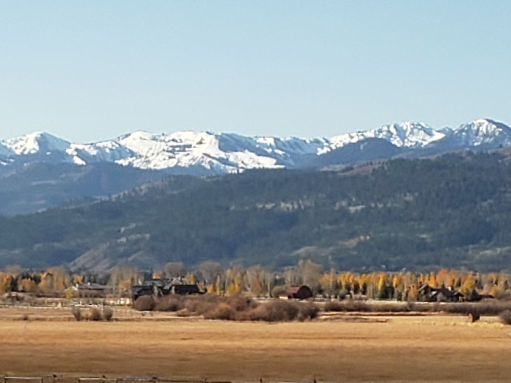 We had two passes to go over getting to Jackson. Both intense. Went over the first. 25-30mph. We were above the snow line. Got on the other side. Irena does not like mountain driving too much. Cute little town. Beautiful vistas. Pointed to tehe big mountains in the distance. See those? Those are the backside of the Tetons. We need to get on the other side of those.