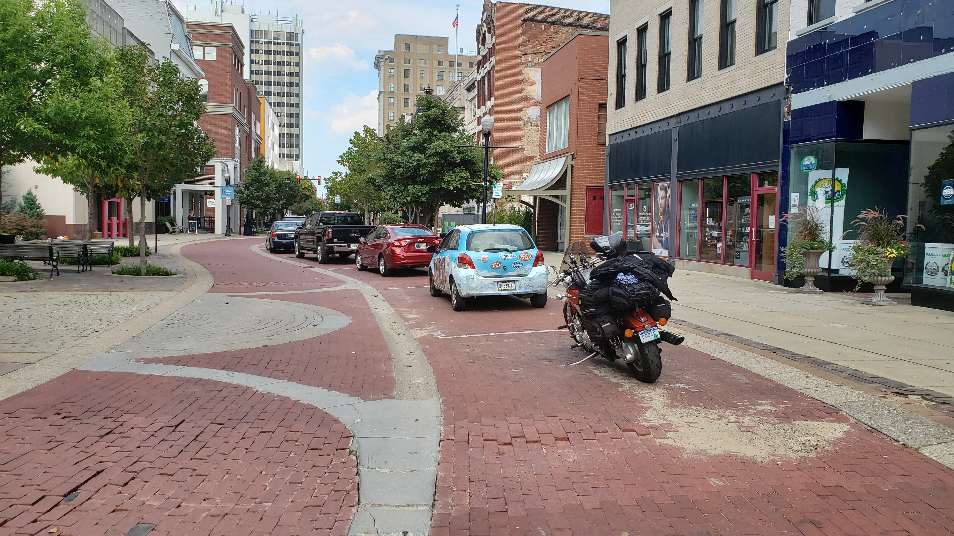 Bottom line is the last hour into Paducah it rained.  It was actually nice.  It cooled things off considerable.  Fueled up right away so I didn’t have to do it in the morning and started dialing for hotels.  Apparently a few events were happening in town, including but not limited to the National Quilt Convention.  This had the effect of sucking up all the hotel rooms.  By this time it was after 7p (central time).  I found a place that offered me a room for $55.  I went by, and kept driving by.  My needs when I’m solo are basic but I have to set a standard somewhere.