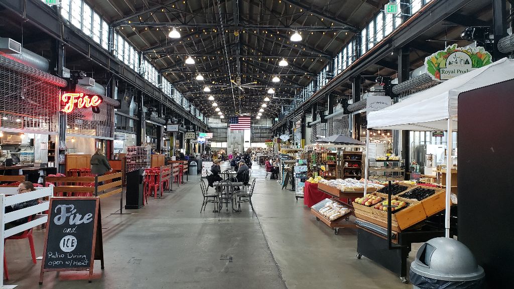 Apples and hops. Orchards everywhere. Big processing and storage facilities. This isn’t Mr. Peebles Cider Mill. Nice though.. Traffic picked up. Made our way downtown. Very nice historic type downtown. Stopped at the Public Market down on the river. Walked through. Nice break.