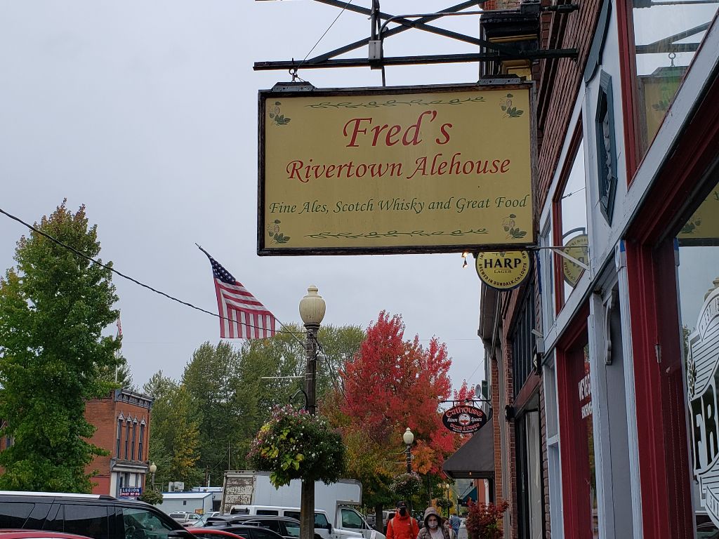Getting hungry. Pulled into Snohomish. Cute little town on US 2. Downtown is mostly antique stores and restaurants. Maybe 5 or 6 blocks long with fewer parking places than are needed. Found a mediocre tavern for lunch, then spent an hour or so in and out of some of the shops. It was raining so our enthusiasm was dampened.