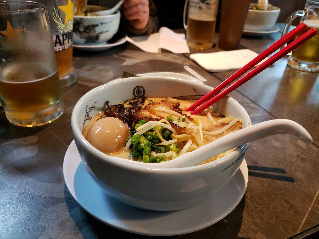 Headed to one of the numerous ramen restaurants in the area. Lots of Asian influenced eateries. The ramen was unbelievable. Forget the cellophane packaged stuff. No relation what so ever. A complete meal unto itself.