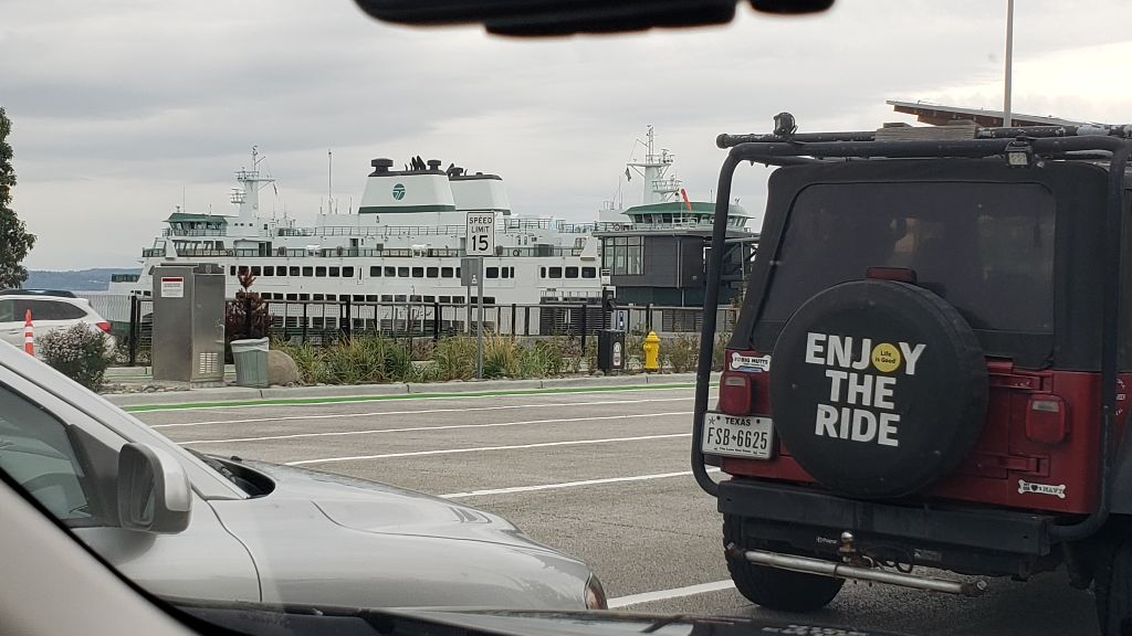 Rainy day. Heading to Ally’s folks house for the day. On Whidbey Island. Scooting, trying to make the 11a ferry. A few stops. Got in line and secured a spot on the boat. Big ferry. Lots of traffic to and from. Big island.